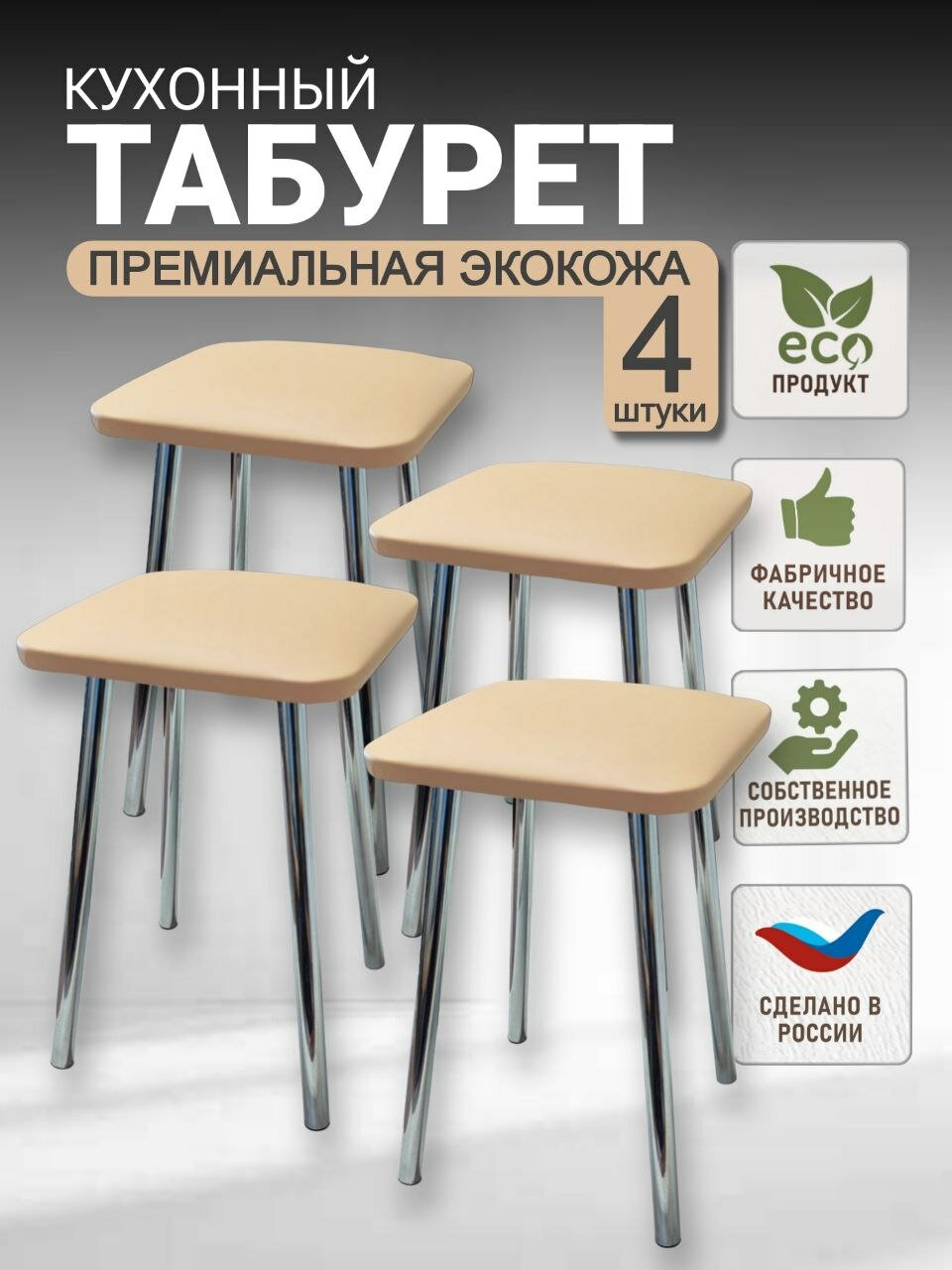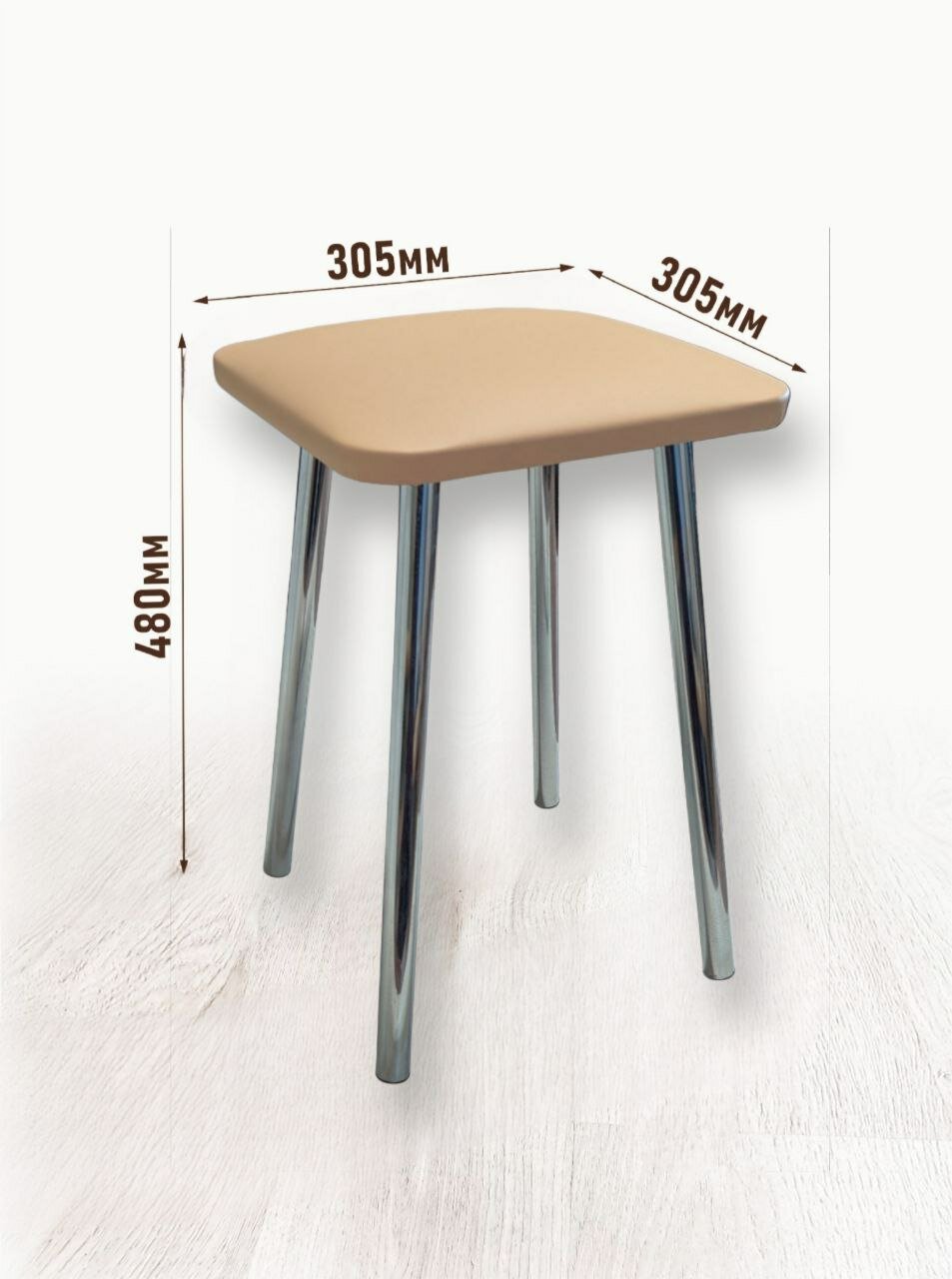Табурет имеет мягкое квадратное сидение, материал сиденья прочный, легкий в чистке, выполнен из экокожи. Каркас выполнен из высокопрочной хромированной стали, выдерживает нагрузку до 120 кг. Закругленные пластиковые подпятники на ножках не царапают поверхность вашего пола. Наши табуреты изготовлены из сварного цельнолитого каркаса, сварные швы невидимые, ножка диаметром 25мм. Табурет легкий прочный и надежный. Устойчивая форма ножек, на них удобно и комфортно сидеть и можно вставать используя как стремянку