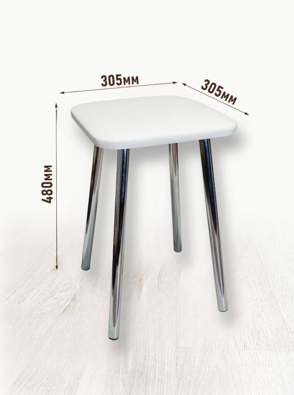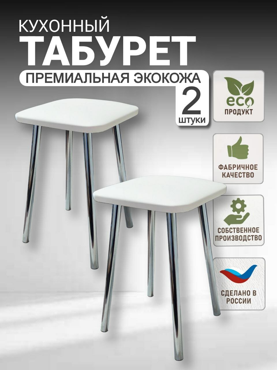 Элегантный табурет на металлических ножках - компактная и практичная мебель, которая используется на кухне и веранде, в гостиной или кафе. Табуреты многофункциональны и практичны, нужны всегда и в каждом доме, не занимают много места, легко собираются и разбираются. Наши табуретки имеют мягкое квадратное сидение, материал сиденья прочный, устойчивый к истиранию, легкий в чистке, выполнен из экокожи. Ножки выполнены из хромированной стали, диаметр трубы 25мм, выдерживает нагрузку до 120 кг. Закругленные пластиковые подпятники на ножках берегут поверхность вашего пола от царапин.