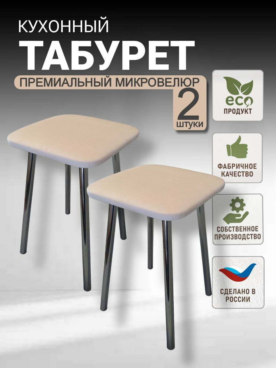 Купить Табурет кухонный, табуретка, микровелюр, хромированные ножки (высота 48 см.), комплект 2 шт. с доставкой по всей России.