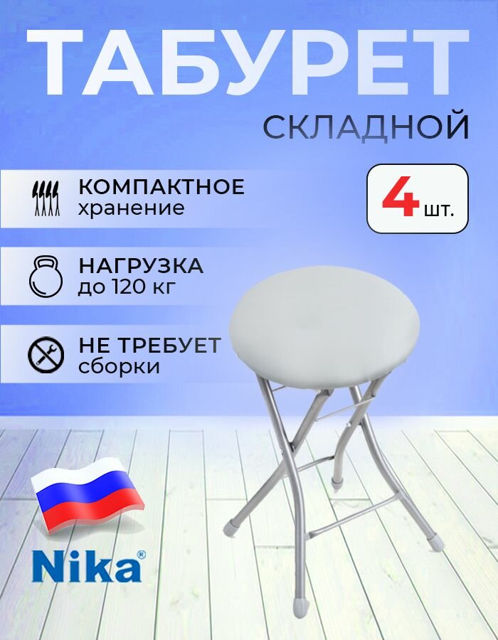 Купить Табурет Nika Тбск2, складной, для дома, компактный, экокожа, 33х33х48 см, максимальная нагрузка 100кг, 4шт с доставкой по всей России.