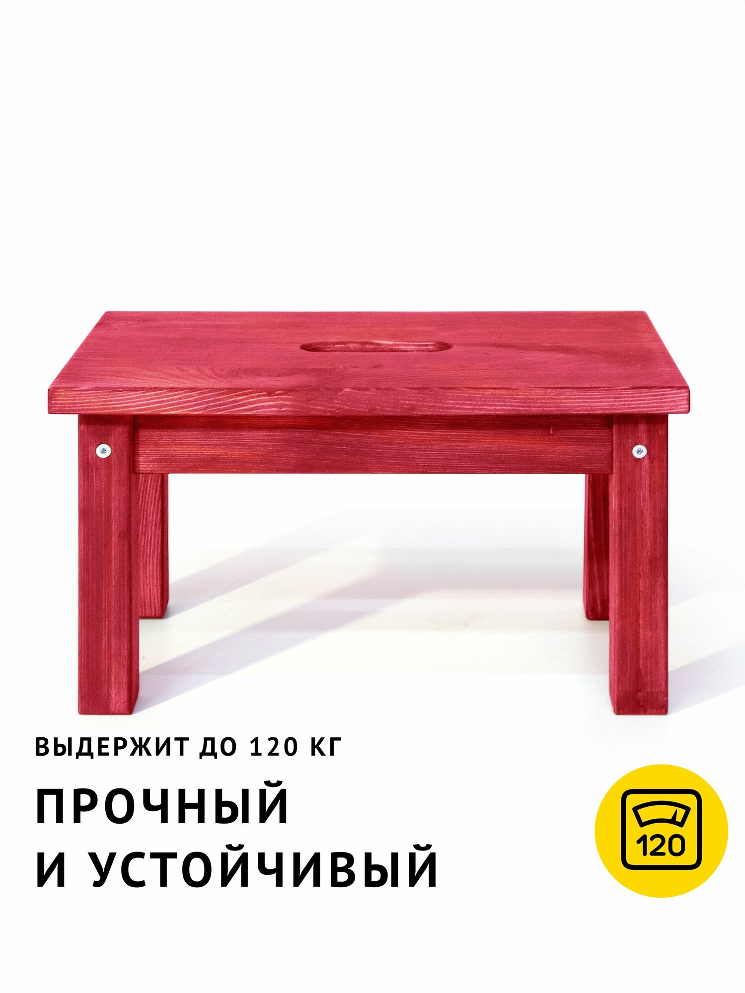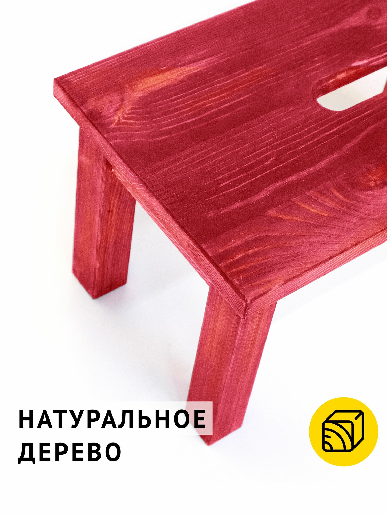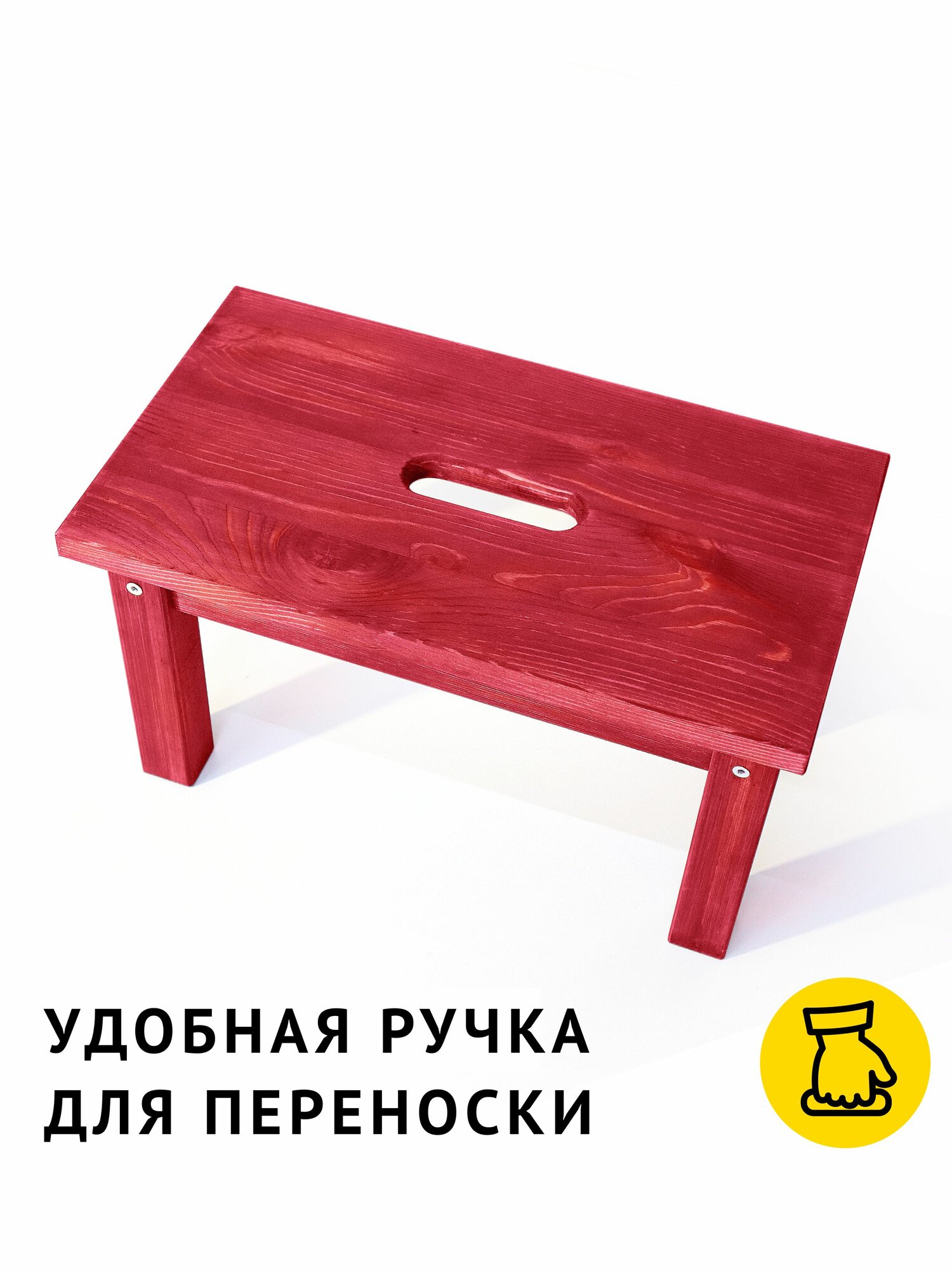 Табурет изготовлен из натурального дерева. Массив хвойных пород дерева – износостойкий натуральный материал. Благодаря отверстию в верхней ступеньке табурет легко перемещать.