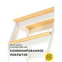 Табурет-стремянка с комбинированным покрытием: ступеньки покрыты прозрачным лаком, а ножки - эмалью белого цвета.