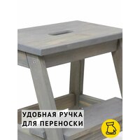 Табурет-стремянка изготовлен из натурального дерева. Массив хвойных пород дерева – износостойкий натуральный материал. Благодаря отверстию в верхней ступеньке табурет-лестницу легко перемещать.