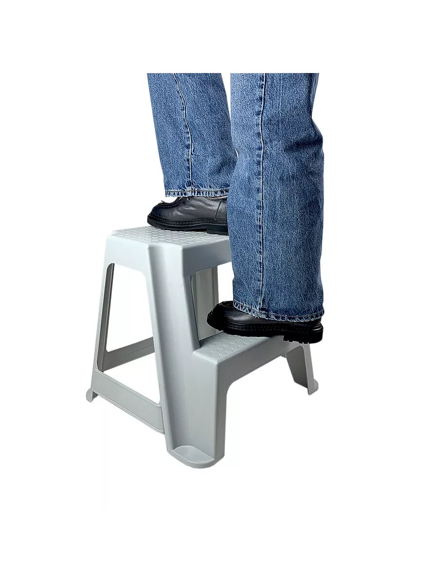 Литой табурет-стремянка со ступенькой. Позволяет легко добраться до полок, расположенных выше человеческого роста. Не требует сборки. Штабелируется. Табурет-стремянку удобно применять в магазинах, аптеках, на складах, в офисах, а также дома, на складе или в гараже. Возможная нагрузка: до 120 кг