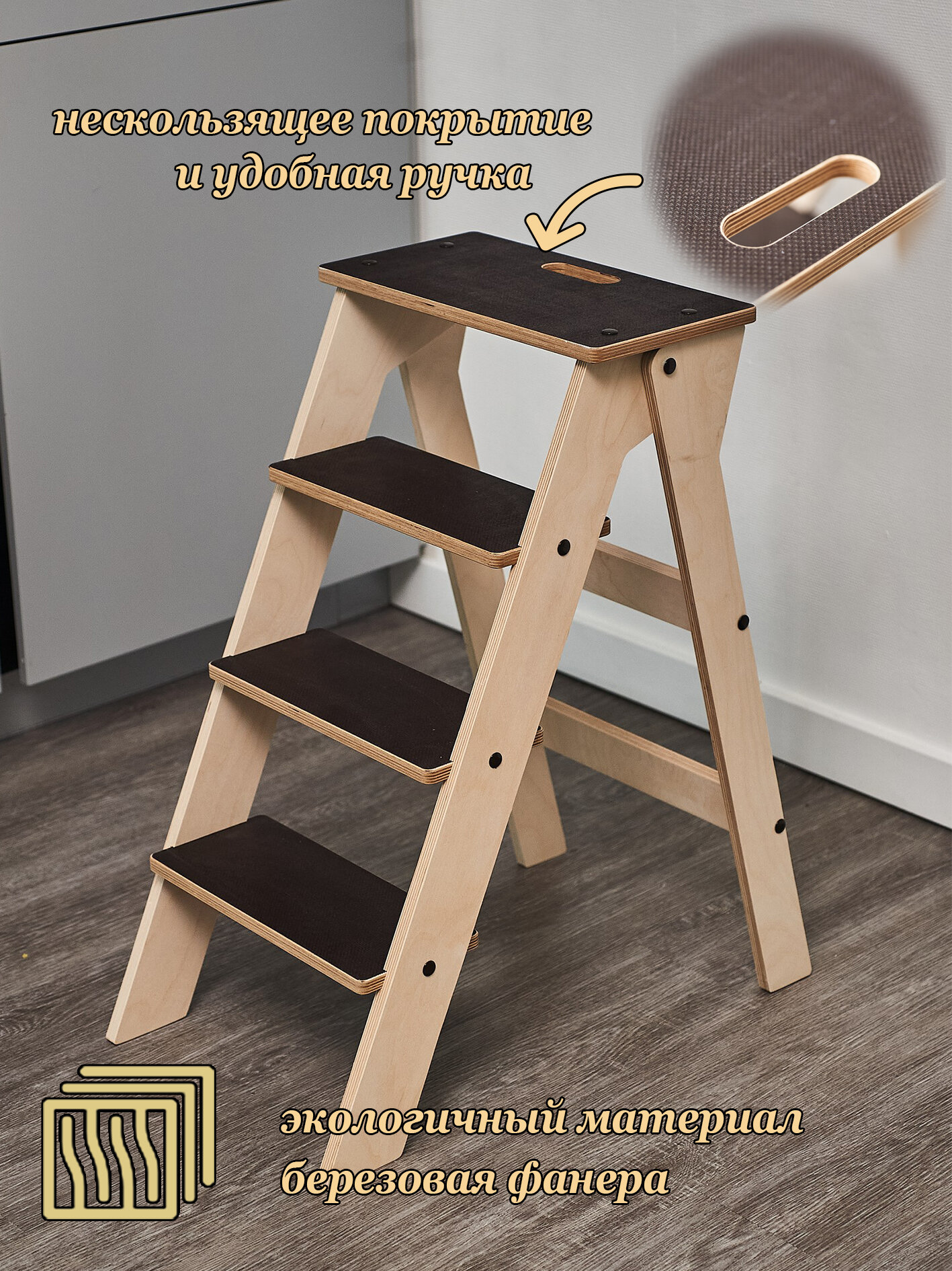 Табурет-стремянка Steply деревянный, складной, 3 ступени, до 120 кг