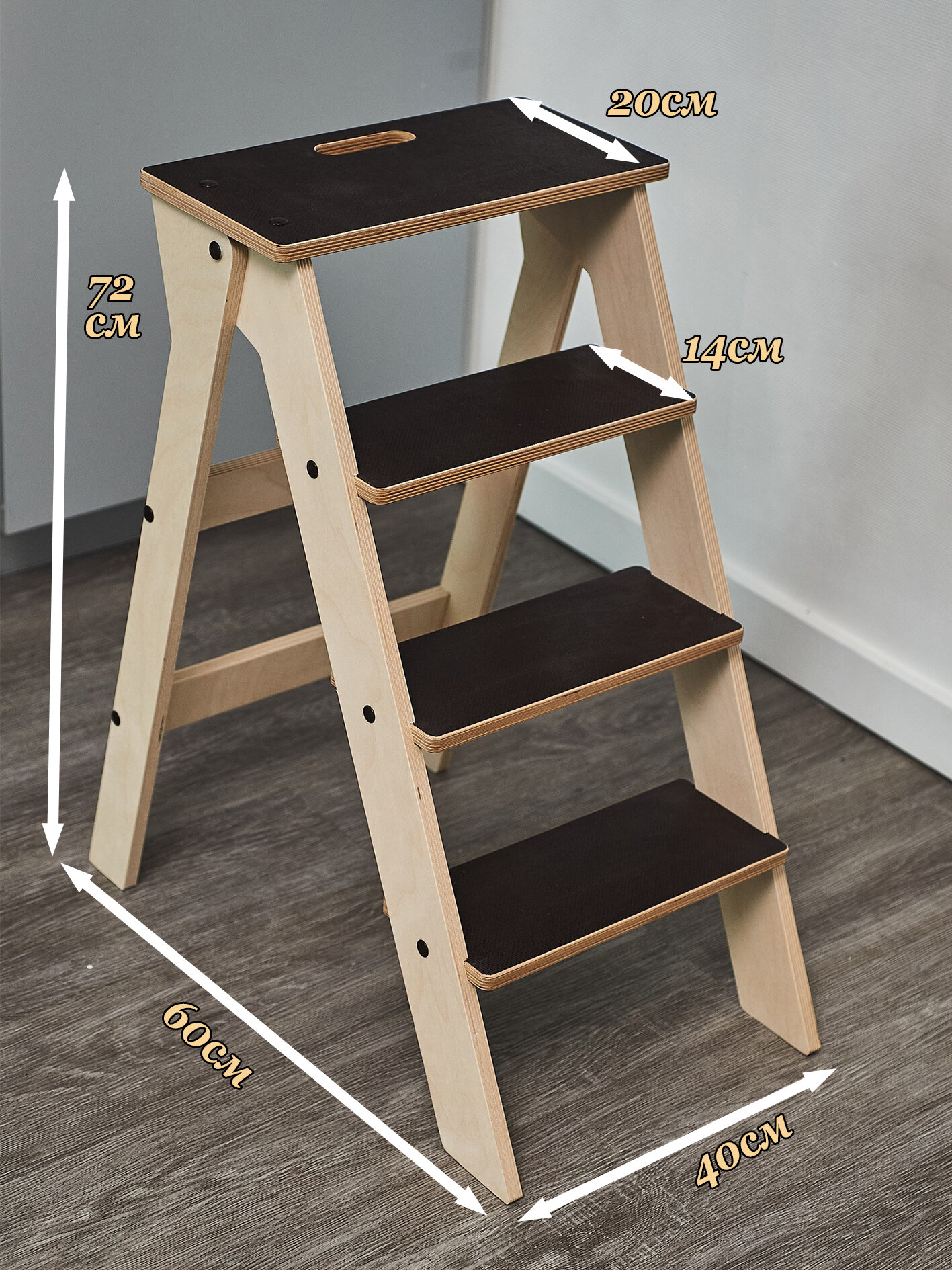 Табурет-стремянка Steply деревянный, складной, 4 ступени, до 120 кг