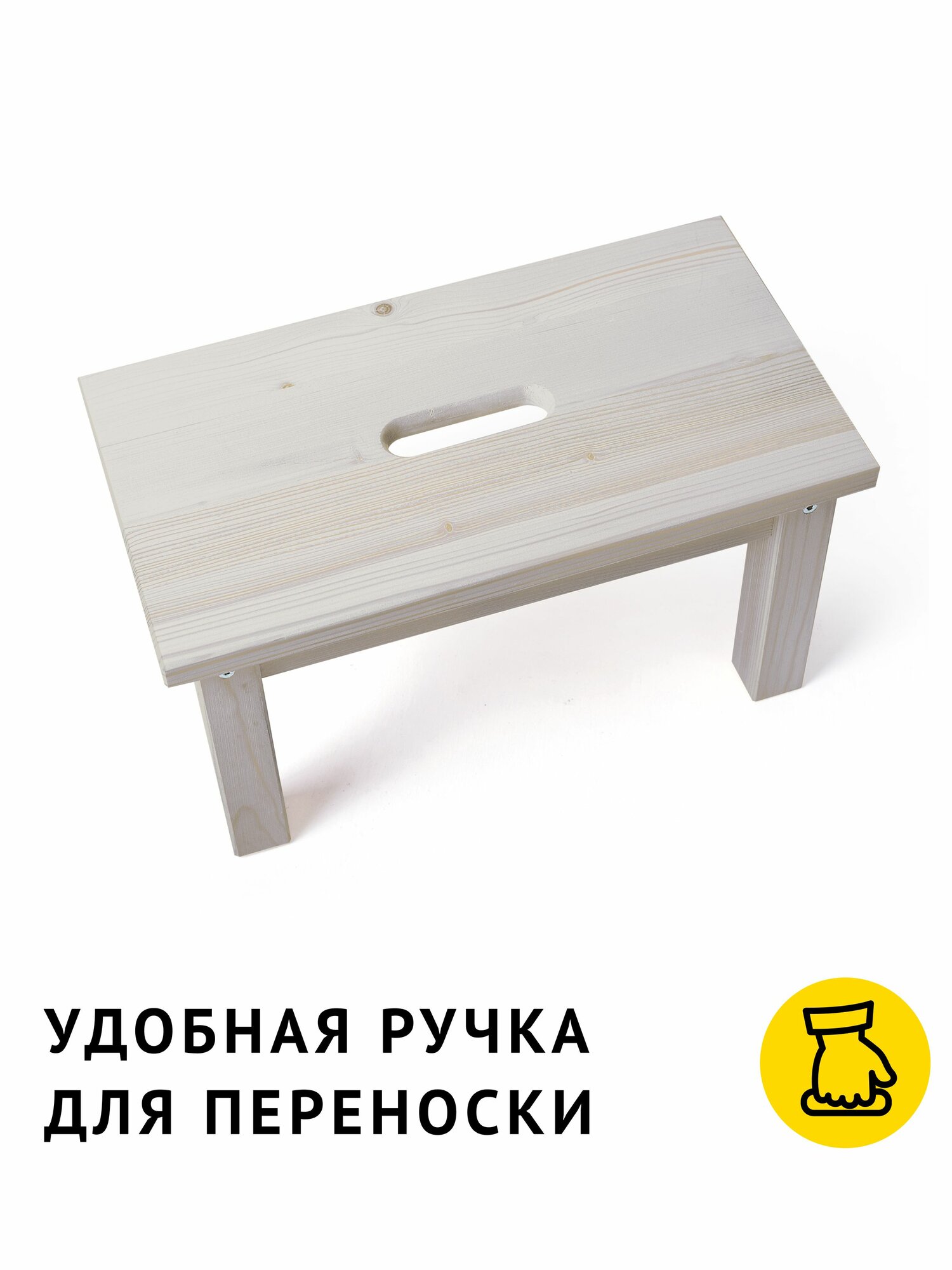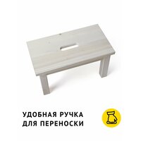 Табурет изготовлен из натурального дерева. Массив хвойных пород дерева – износостойкий натуральный материал. Благодаря отверстию в верхней ступеньке табурет легко перемещать.