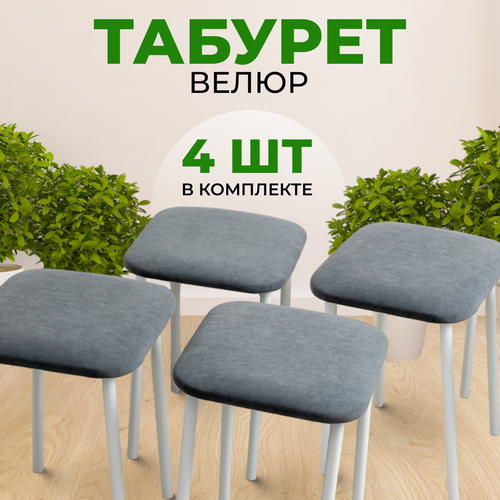 Табуреты в наборе из 4-х штук - это функциональная мебель, которая будет радовать вас эстетичным внешним видом, мобильностью и удобством использования. У изделий устойчивая конструкция, прочное основание с четырьмя металлическими ножками, окрашенными в белый цвет, мягкая сидушка с обивкой из антивандального велюра. Качественный материал устойчив к загрязнениям, легко очищается с помощью влажной салфетки. Для защиты пола предусмотрены пластиковые заглушки на ножки. Крепкая табуретка с удобным сидением радует компактным размером, выдерживает вес до 120 кг.