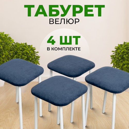 Табуреты в наборе из 4-х штук - это функциональная мебель, которая будет радовать вас эстетичным внешним видом, мобильностью и удобством использования. У изделий устойчивая конструкция, прочное основание с четырьмя металлическими ножками, окрашенными в белый цвет, мягкая сидушка с обивкой из антивандального велюра. Качественный материал устойчив к загрязнениям, легко очищается с помощью влажной салфетки. Для защиты пола предусмотрены пластиковые заглушки на ножки. Крепкая табуретка с удобным сидением радует компактным размером, выдерживает вес до 120 кг.