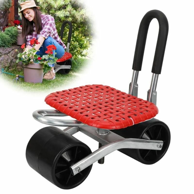 Стул садовый на колесах для прополки и работы в саду 35х47х14см с поворотным механизмом(360°), цвет синий. Показать полностью