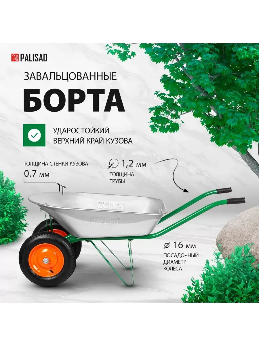 Представляем вам надёжную и выносливую садовую тачку PALISAD, которая станет незаменимым помощником в саду, огороде и на стройке. Эта двухколесная тачка с вместительным 78-литровым ковшом легко справится с любыми задачами, будь то перевозка земли, песка, щебня или других грузов. Благодаря прочной конструкции и максимальной нагрузке 170 кг, вы можете быть уверены в её надёжности и долговечности. Удобный передний упор облегчает управление тачкой, а посадка на подшипник обеспечивает плавный ход и маневренность. Эмалированное покрытие защищает тачку от коррозии, гарантируя её долгий срок службы. PALISAD - это идеальный выбор для тех, кто ценит качество и практичность. Эта садовая тачка станет верным помощником в любых работах по дому и саду. Не упустите возможность приобрести качественную и надёжную тачку по доступной цене! С PALISAD ваши работы станут легче и приятнее. Забудьте о тяжести и неудобствах - с этой тачкой вы справитесь с любыми задачами! Мы уверены, что вы останетесь довольны своим выбором. PALISAD - ваш надёжный помощник в любых работах!