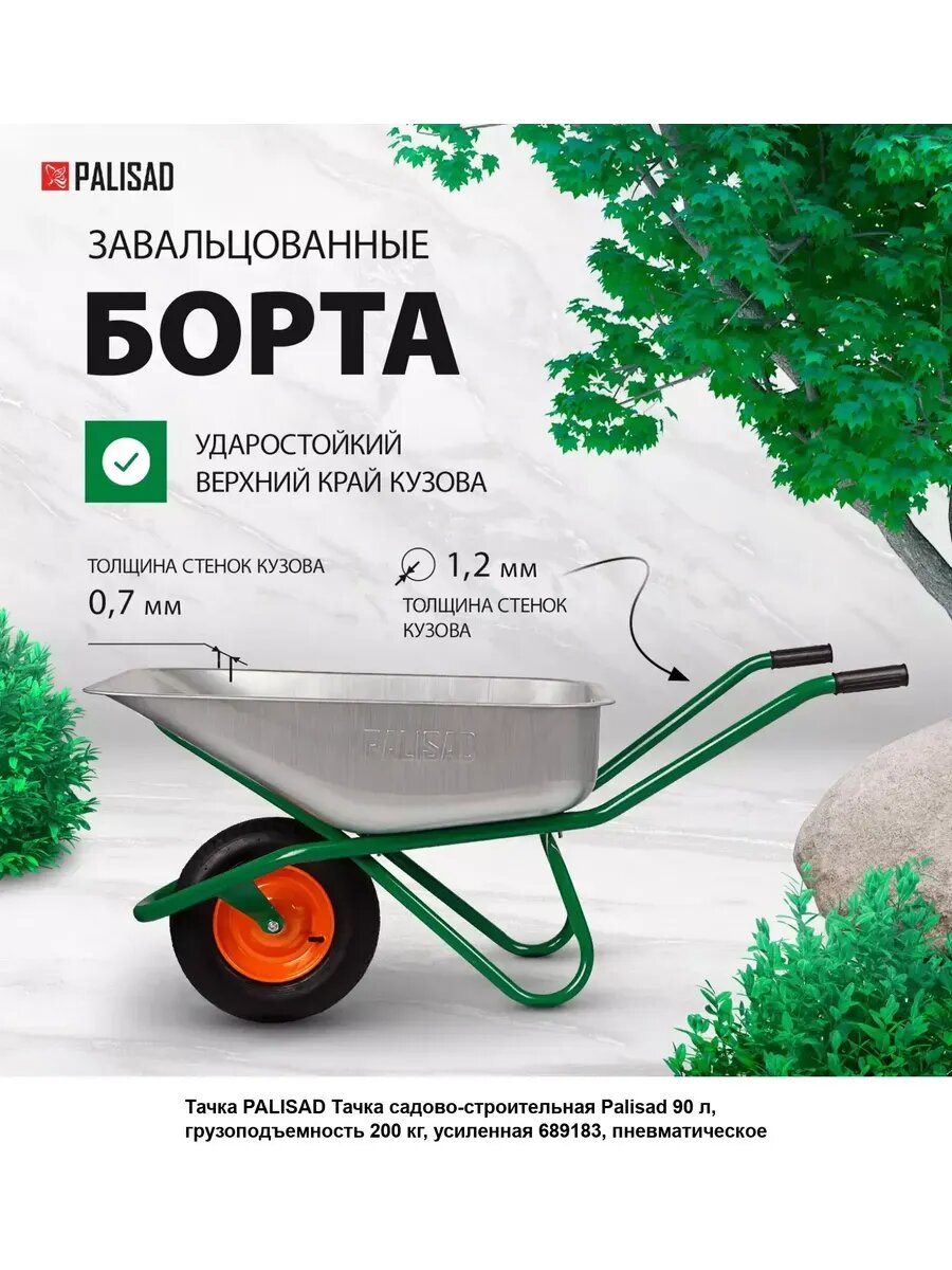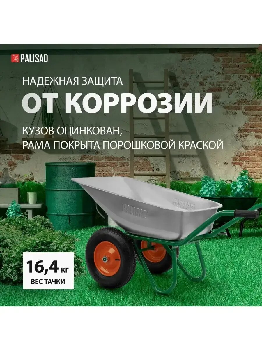 Представляем вам надежного помощника для всех ваших садовых и строительных работ – тачку садовую двухколесную PALISAD! Эта прочная и вместительная тачка станет незаменимым инструментом для перевозки грузов весом до 320 кг, будь то земля, строительные материалы или просто тяжелые покупки. Благодаря вместительному ковшу объемом 100 литров вы сможете за один раз перевезти больше, экономя время и силы. Пневматические колеса обеспечивают плавный ход по любому покрытию, а передняя опора гарантирует устойчивость и безопасность при загрузке и разгрузке. Тачка садовая PALISAD изготовлена из высококачественной стали с покрытием из эмали, что гарантирует ее долговечность и защиту от коррозии. Посадка на подшипник обеспечивает легкое вращение колес и маневренность даже в ограниченном пространстве. Эта тачка садовая двухколесная усиленная станет вашим верным помощником на долгие годы!