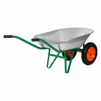 Садовая тачка Palisad 689225 с двумя колесами, грузоподъемностью 170 кг и с кузовом объемом 78 л, рассчитана на транспортировку садовых и легких строительных грузов. Избавляет от необходимости ручного перемещения тяжестей и позволяет снизить нагрузку на спину. Преимущества Надежность и долговечность — рама из трубок диаметром 32 мм со стенками 1,2 мм и кузов с упорами и закругленными бортами устойчивы к деформации; Устойчивость — благодаря 2 колесам тачка не проваливается в грунт; Стойкость к коррозии — стальная рама покрыта порошковой эмалью, а кузов оцинкован; Хорошая проходимость — колеса с шариковыми подшипниками легко вращаются; Удобная фронтальная разгрузка — у тачки имеется дополнительный передний упор; Сменные колеса — с тележкой совместимы артикулы 68971, 68973, 68975 и 68940. Длина в упаковке, мм: 1060
