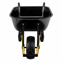 Усиленная строительная тачка Denzel 68999 с колесо 15 х 6,00-6, объемом 140 л и грузоподъемностью до 230 кг, пригодится профессиональным строителям и фермерам для ежедневного использования. Оптимально подходит для использования на строительных объектах и в сельском хозяйстве. С ее помощью можно транспортировать строительные грузы, сыпучие материалы и т. д. ПреимуществаРама с профилем 50 х 25 мм толщиной 1,2 мм характеризуется жесткостью и стабильностью, что положительно сказывается на ресурсе тачки. Прочность и надежность конструкции обеспечивает продуманная до мелочей конструкция: усиленная перемычка, широкие опоры, подпятники на ножках, мощная дуга с ребром жесткости. Благодаря завальцованным бортикам достигается высокая ударостойкость верхней части кузова. Кузов и рама надежно защищены от коррозии благодаря эмалевому покрытию. Широкое пневмоколесо с грунтозацепом и мощная рама с подпятниками предотвращают проваливание тележки в грунт. Колесо установлено на два шариковых подшипника, что гарантирует надежность крепления и высокую проходимость тачки. Специальная петля на раме облегчает транспортировку тачки при полной загрузке и позволяет второму человеку буксировать тачку при необходимости. Для удобства фронтальной разгрузки предусмотрена дуга для упора на колесе.