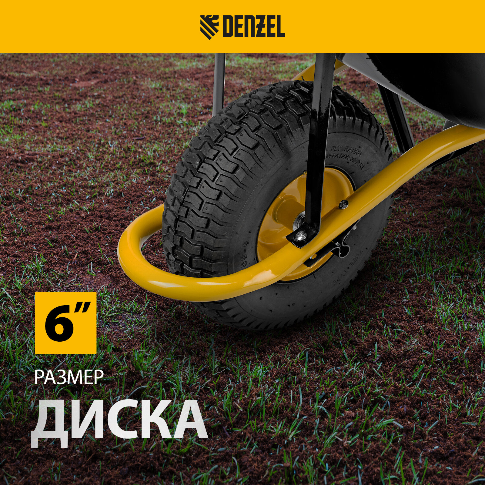 Тачка строительная усиленная Denzel, 230кг / 130л, стальное оцинкованное корыто и колесо 15х6.00-6, строительная 689965: сравнение цен, характеристики, фото, актуальное наличие и цены.