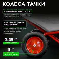 Пневматические колеса размером 3.25-8 обеспечивают плавное и комфортное движение по различным поверхностям. Благодаря посадке на подшипник, колеса легко устанавливаются и снимаются, что упрощает процесс обслуживания и хранения.