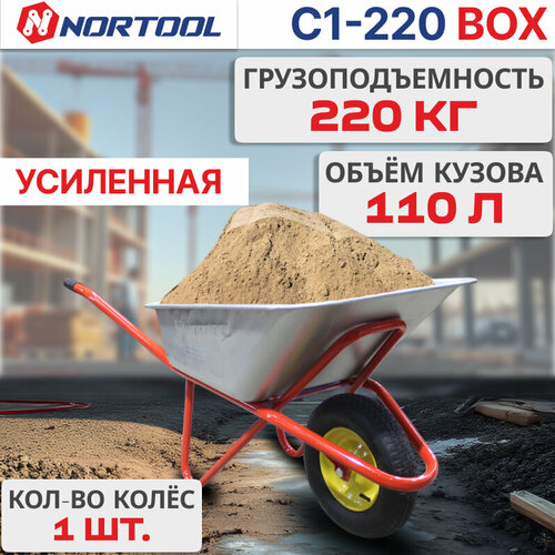 Тачка строительная одноколесная Nortool C1-220 BOX - для перевозки грузов на строительном объекте.