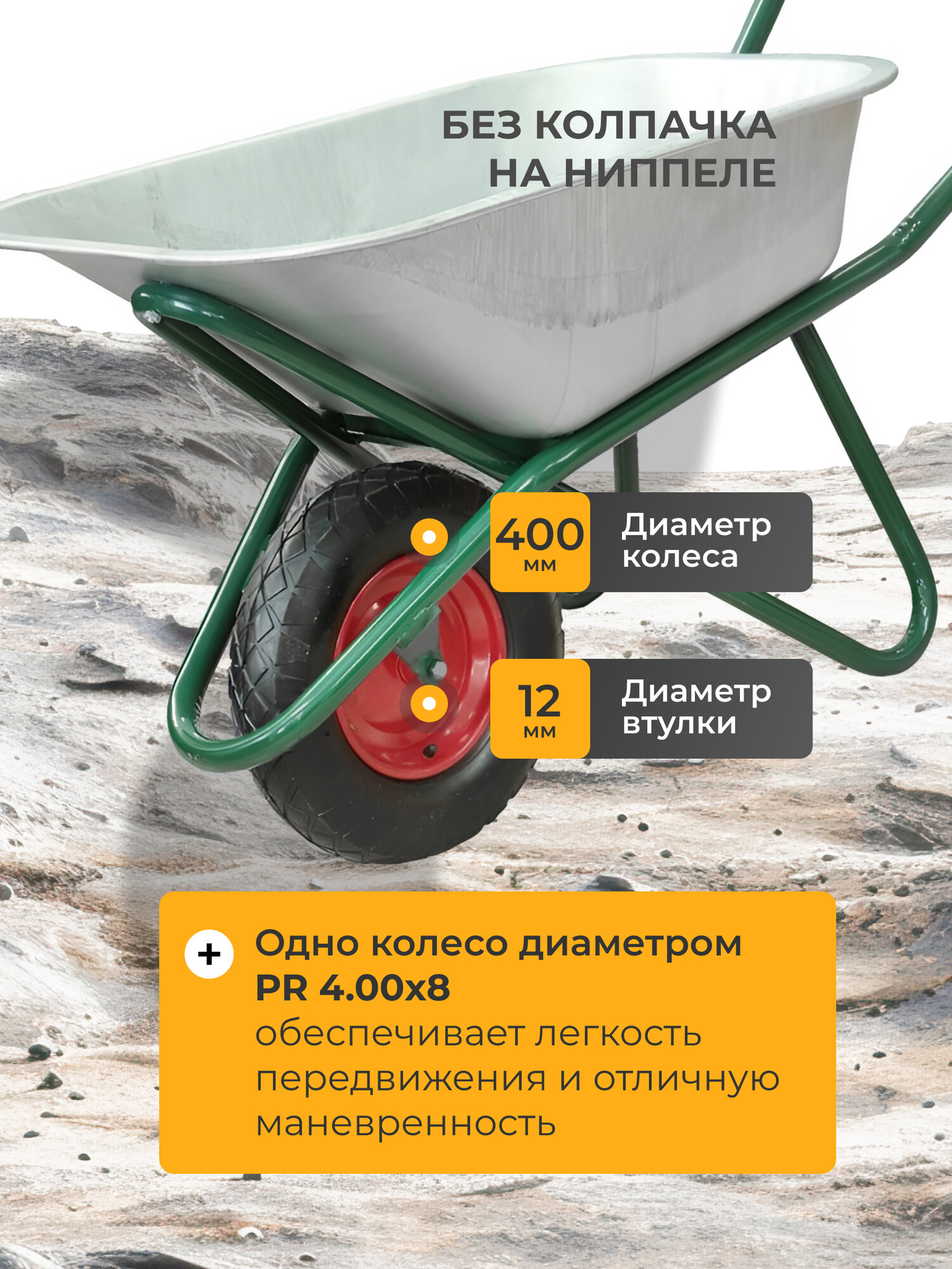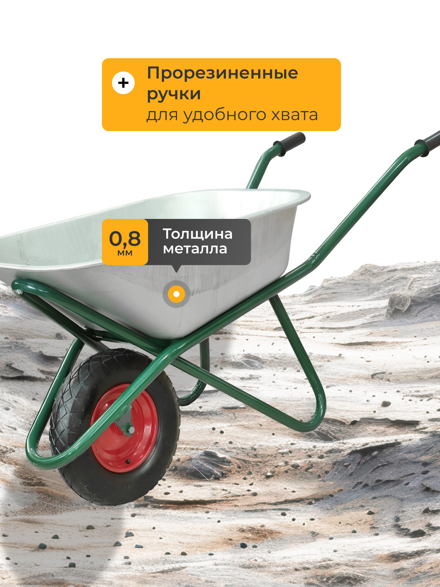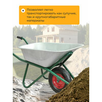 Тачка строительная одноколесная предназначена для использования при проведении строительных, ремонтных работ, перевозки строительных материалов, мусора или других насыпных или навалочных грузов.