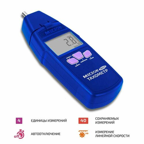 Портативный цифровой тахометр мегеон 18013 нашел широкое применение при проведении измерений скорости вращения различных объектов. Внесён в грси под номером 92810-24. Имеет комбинированную конструкцию, которая позволяет выполнять измерения контактным и бесконтактным методами. Представленная модель является высокоточным измерительным инструментом, который способен измерять скорость вращения в диапазоне оборотов от 30 до 99996 об/мин на расстоянии 5 . 50 см. (лазерный метод измерения) и от 10 до 20000 об/мин (контактный метод), а также линейное перемещение предметов в диапазоне 0,3 . 700 м/мин. Вся информация выводится на большой ЖК-дисплей. Прибор нашёл широкое применение среди специалистов, чья профессиональная деятельность так или иначе связана с измерением скорости вращения различных объектов и предметов.