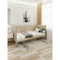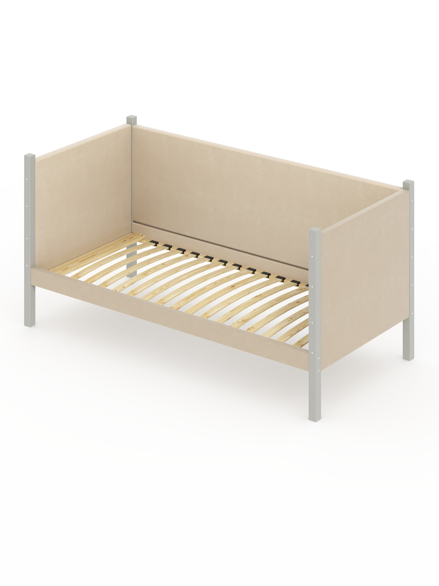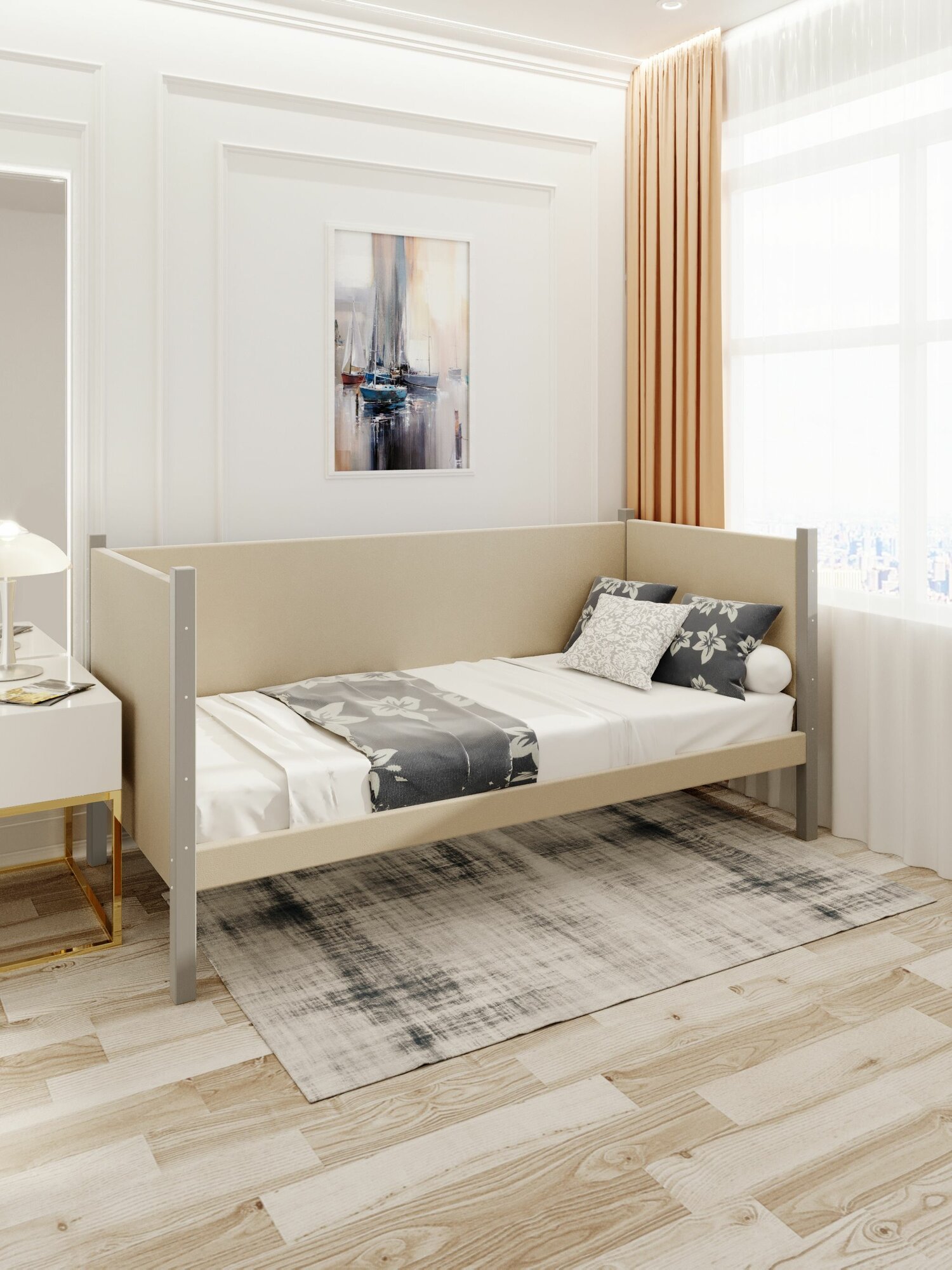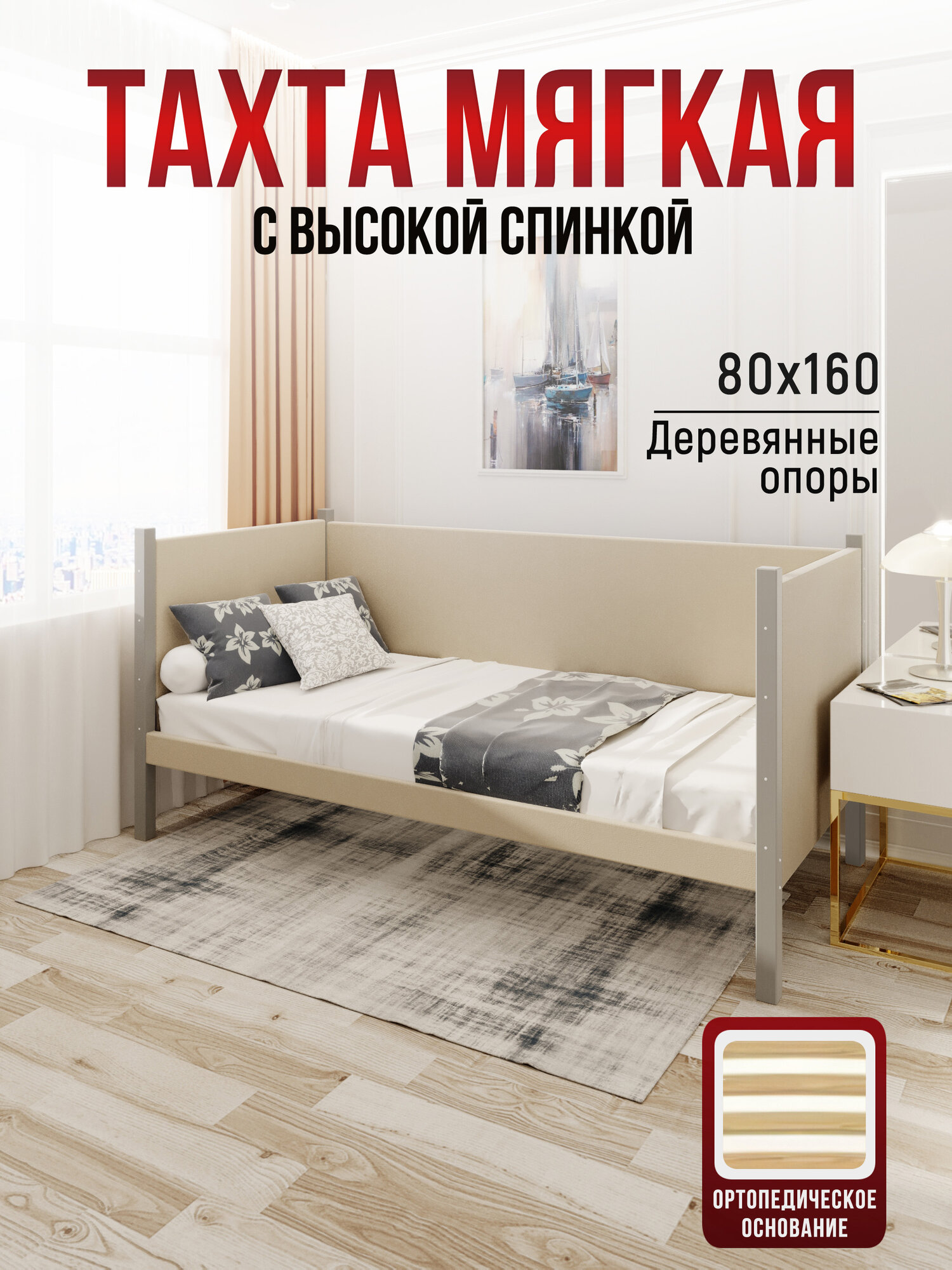 Тахта односпальная из массива сосны Классика, 80х160 см, ортопедическое основание и высокие бортики с мягкой обивкой бежевого цвета, цвет ножек платина: сравнение цен, характеристики, фото, актуальное наличие и цены.