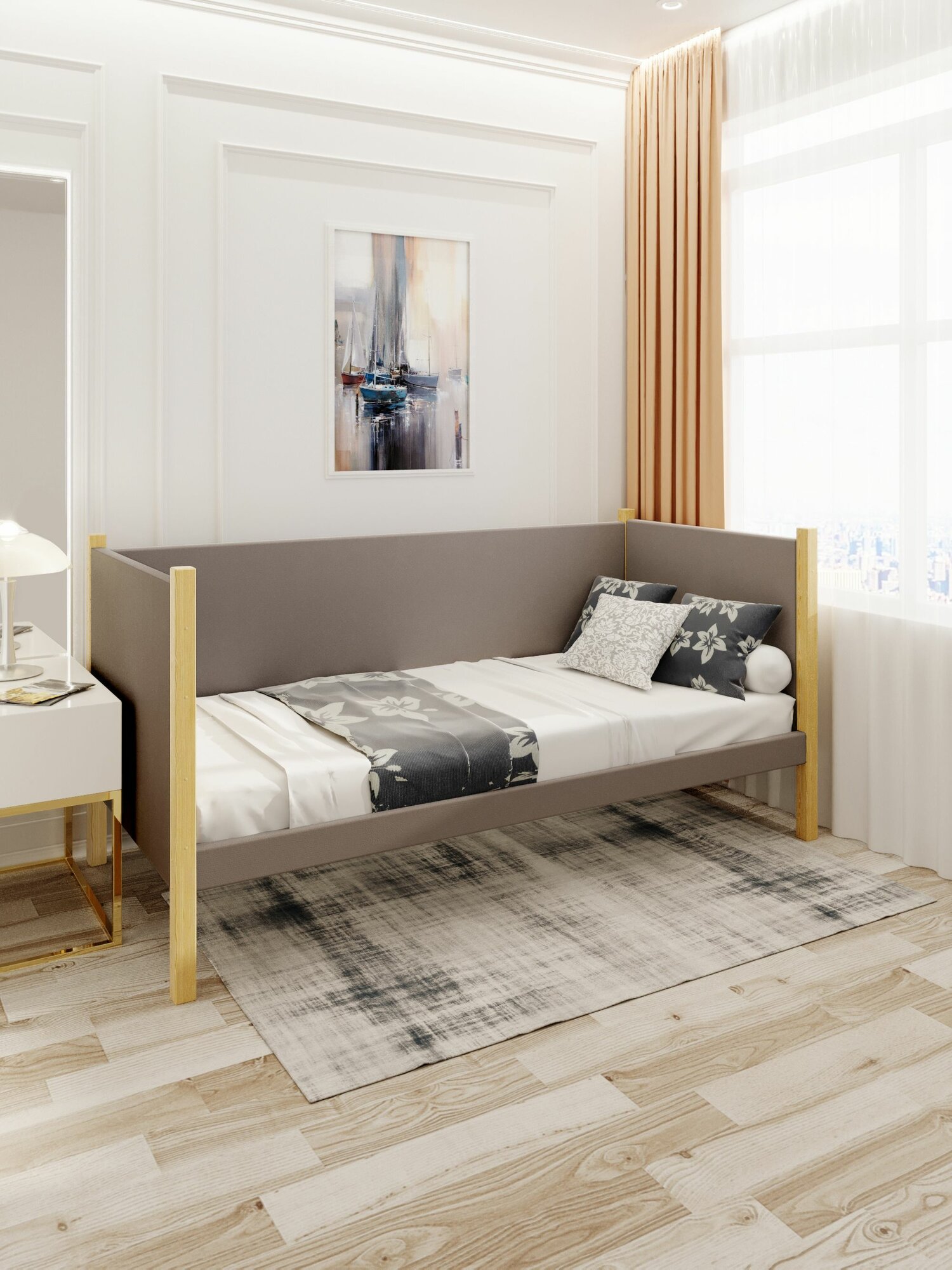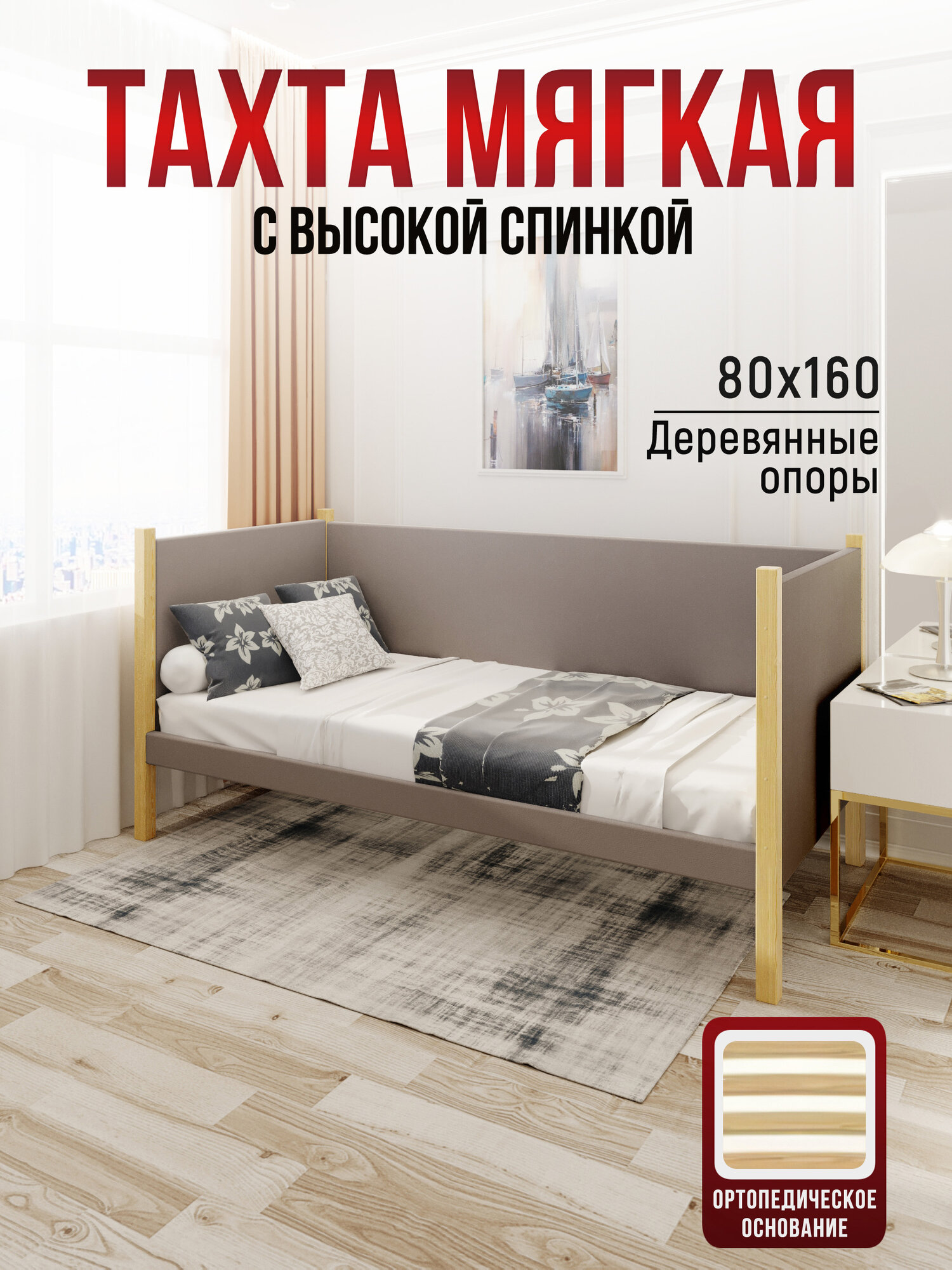 Тахта односпальная из массива сосны Классика, 80х160 см, ортопедическое основание и высокие бортики с мягкой обивкой цвета Мокко Мусс, лакированные ножки: сравнение цен, характеристики, фото, актуальное наличие и цены.