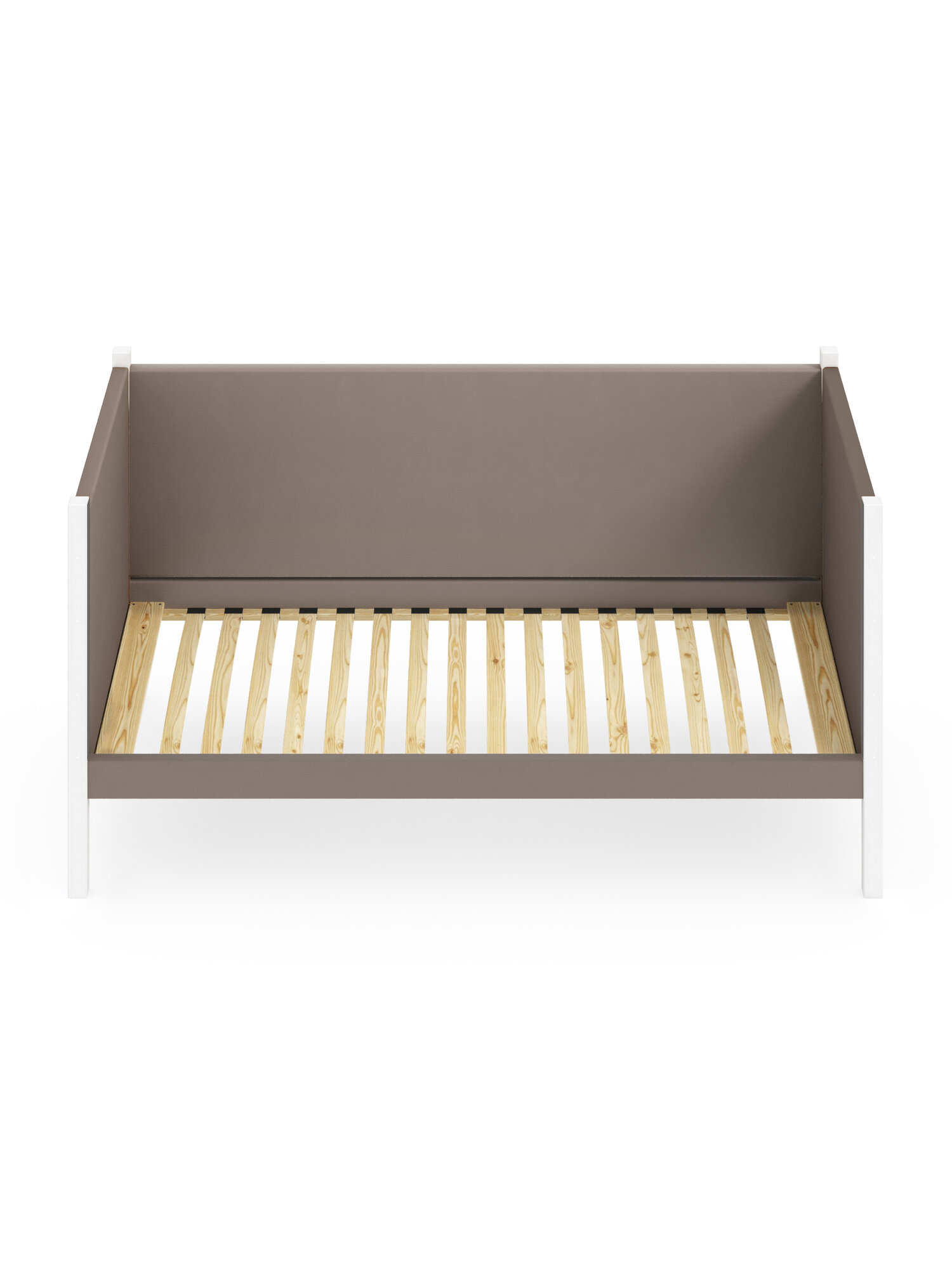 Тахта односпальная из массива сосны Классика, 80х170 см, ортопедическое основание и высокие бортики с мягкой обивкой цвета Мокко Мусс, цвет ножек белый