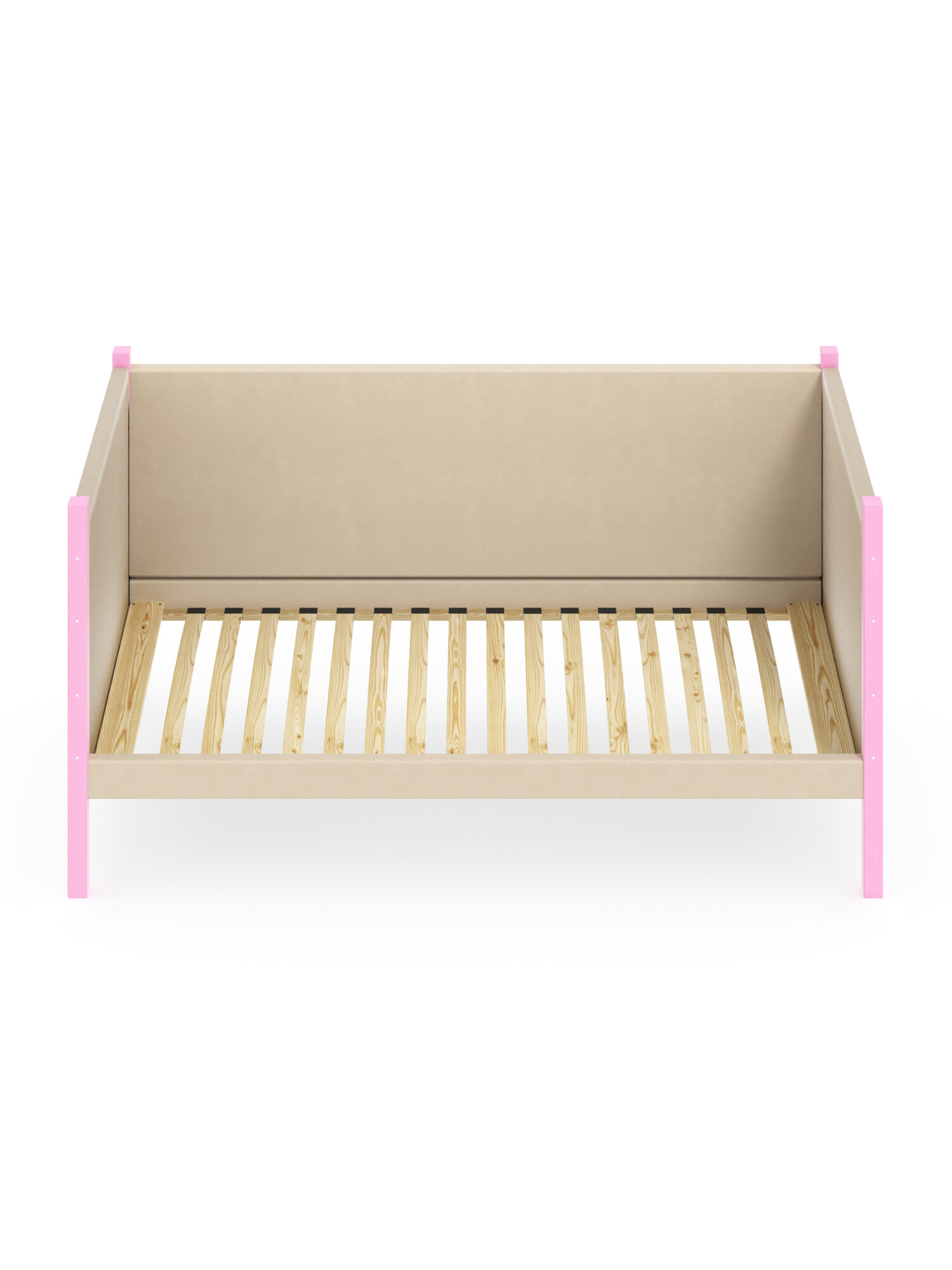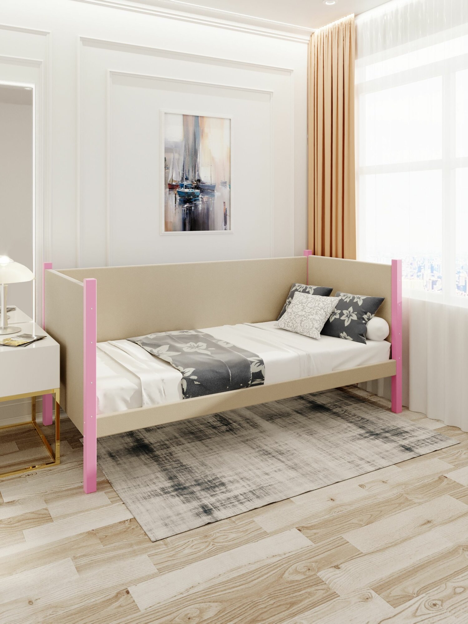 Тахта односпальная из массива сосны Классика, 80х200 см, ортопедическое основание и высокие бортики с мягкой обивкой бежевого цвета, цвет ножек розовый: сравнение цен, характеристики, фото, актуальное наличие и цены.