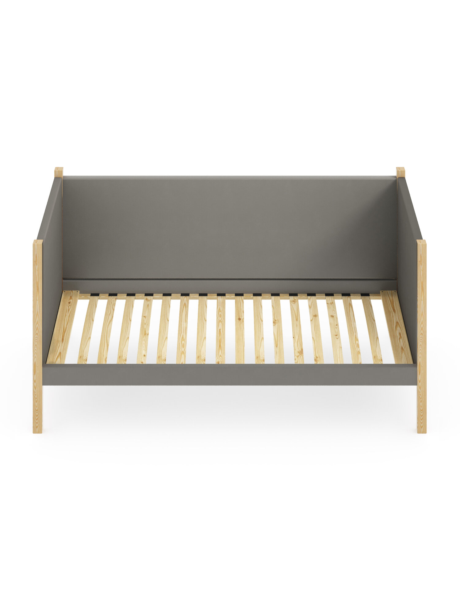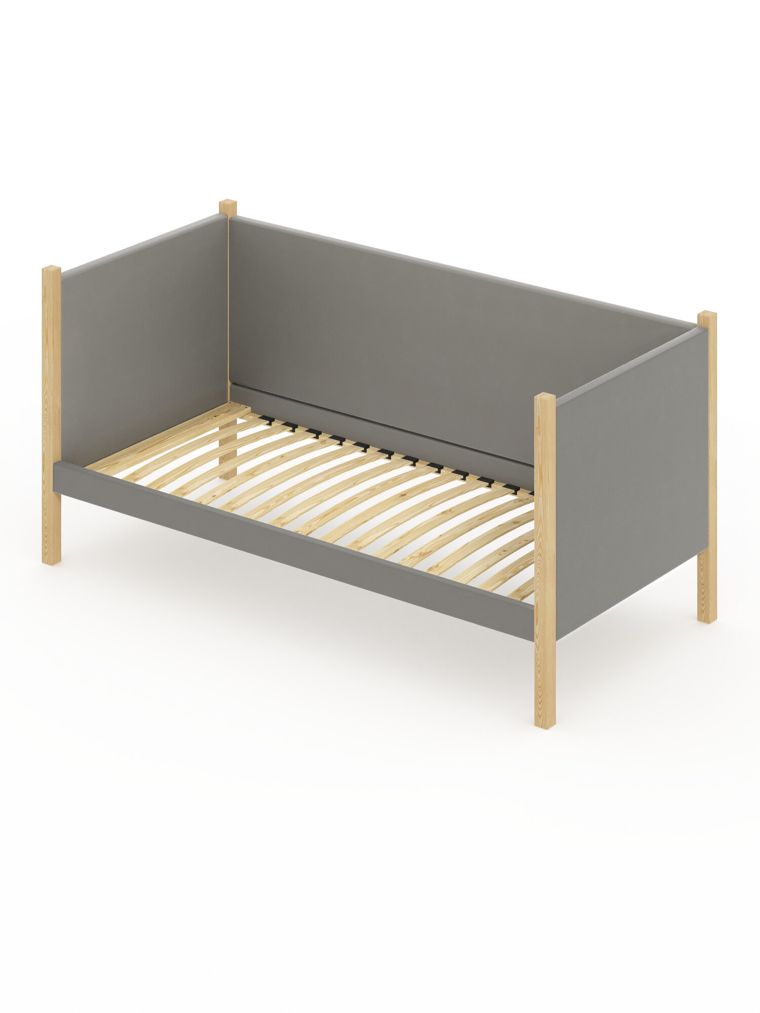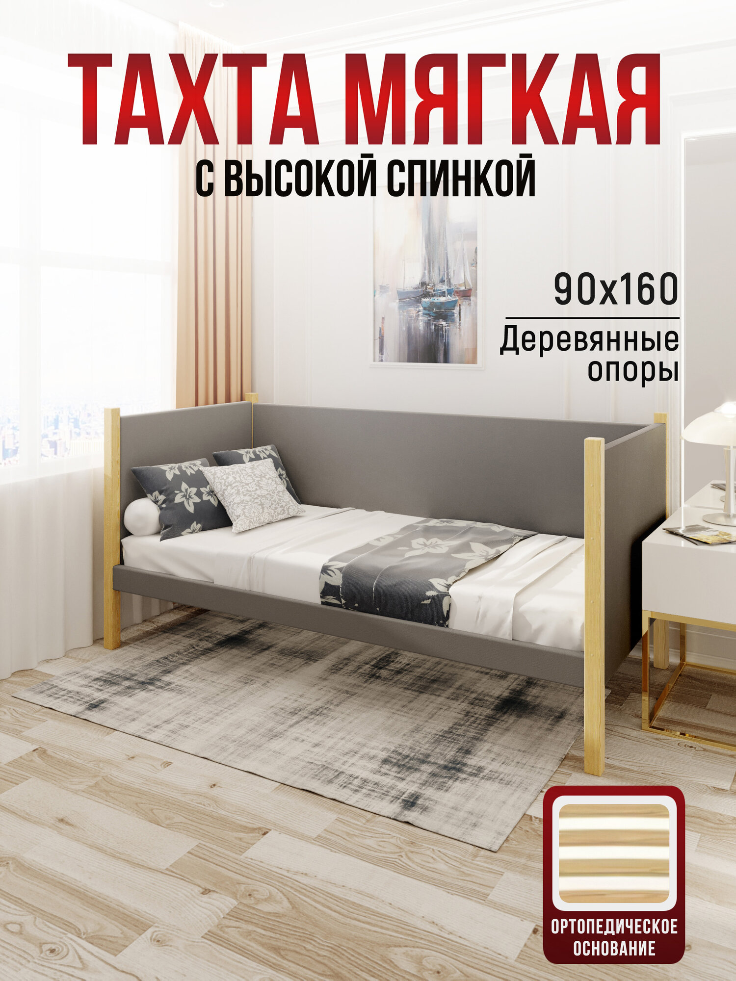 Тахта односпальная из массива сосны Классика, 90х160 см, ортопедическое основание и высокие бортики с мягкой обивкой светло-серого цвета, лакированные ножки: сравнение цен, характеристики, фото, актуальное наличие и цены.
