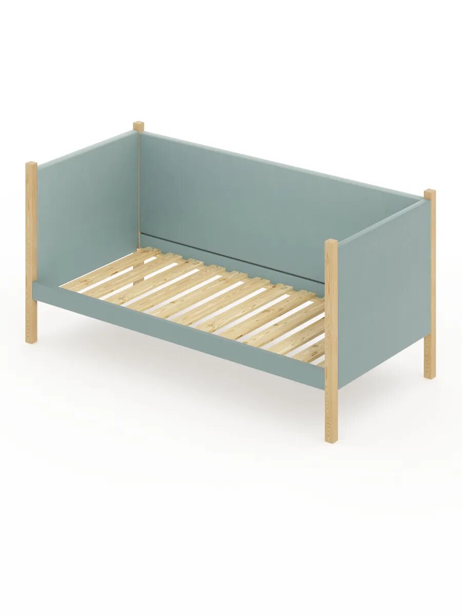 Купить Тахта односпальная из массива сосны Классика, 90х160 см, реечное основание и высокие бортики с мягкой обивкой цвета Тиффани, лакированные ножки с доставкой по всей России.