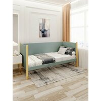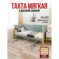Тахта односпальная из массива сосны Классика, 90х160 см, реечное основание и высокие бортики с мягкой обивкой цвета Тиффани, лакированные ножки: сравнение цен, характеристики, фото, актуальное наличие и цены.