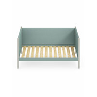 Купить Тахта односпальная из массива сосны Классика, 90х160 см, реечное основание и высокие бортики с мягкой обивкой цвета Тиффани, цвет ножек платина с доставкой по всей России.