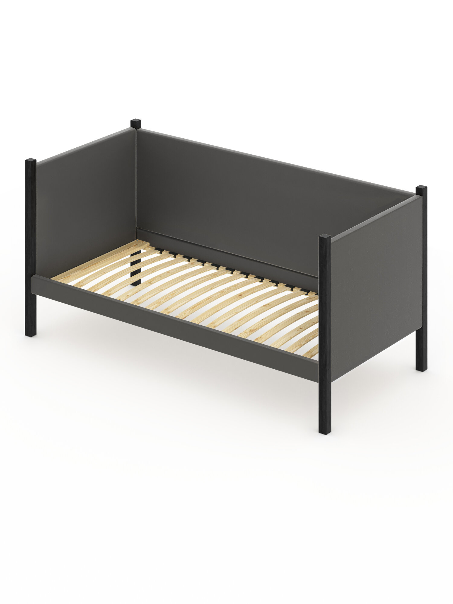 Купить Тахта односпальная из массива сосны Классика, 90х170 см, ортопедическое основание и высокие бортики с мягкой обивкой темно-серого цвета, цвет ножек антрацит с доставкой по всей России.