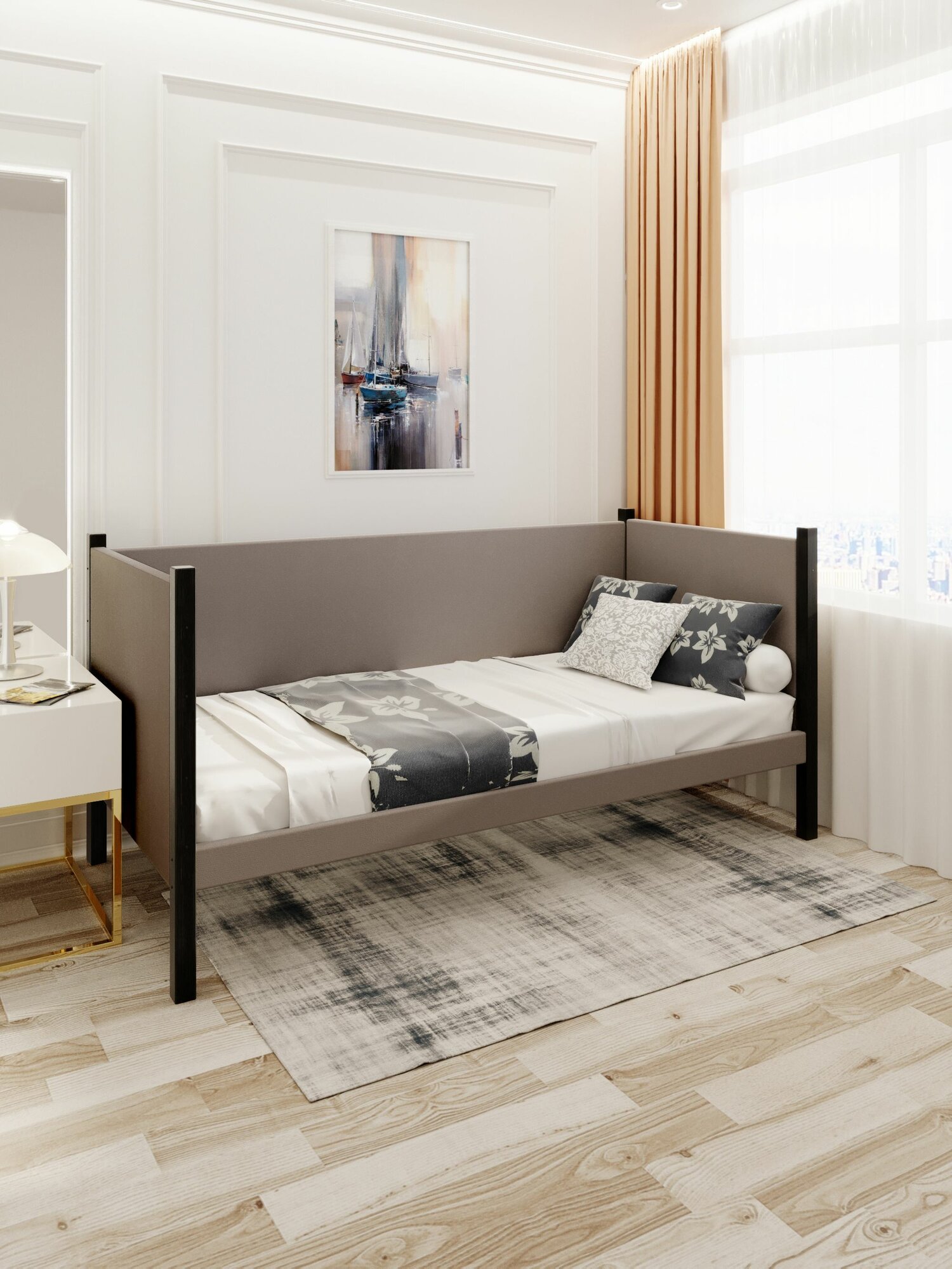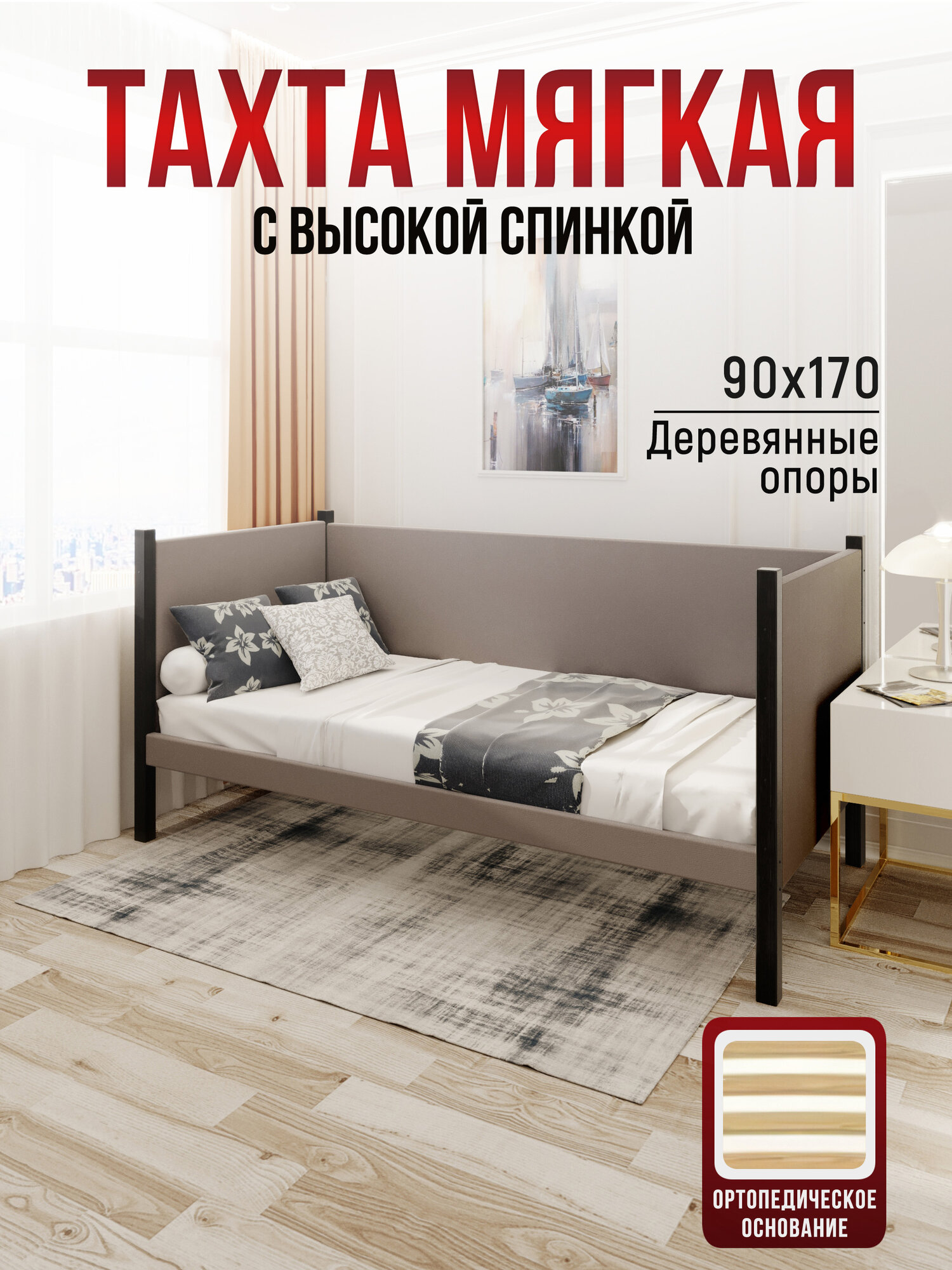 Тахта односпальная из массива сосны Классика, 90х170 см, ортопедическое основание и высокие бортики с мягкой обивкой цвета Мокко Мусс, цвет ножек антрацит: сравнение цен, характеристики, фото, актуальное наличие и цены.