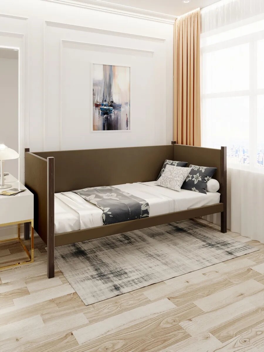 Тахта односпальная из массива сосны Классика, 90х200 см, ортопедическое основание и высокие бортики с мягкой обивкой коричневого цвета, цвет ножек венге: сравнение цен, характеристики, фото, актуальное наличие и цены.