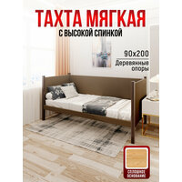 Тахта односпальная из массива сосны Классика, 90х200 см, сплошное основание и высокие бортики с мягкой обивкой коричневого цвета, цвет ножек венге: сравнение цен, характеристики, фото, актуальное наличие и цены.