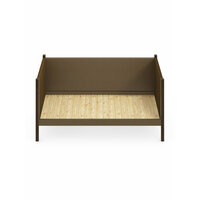 Купить Тахта односпальная из массива сосны Классика, 90х200 см, сплошное основание и высокие бортики с мягкой обивкой коричневого цвета, цвет ножек венге с доставкой по всей России.