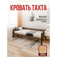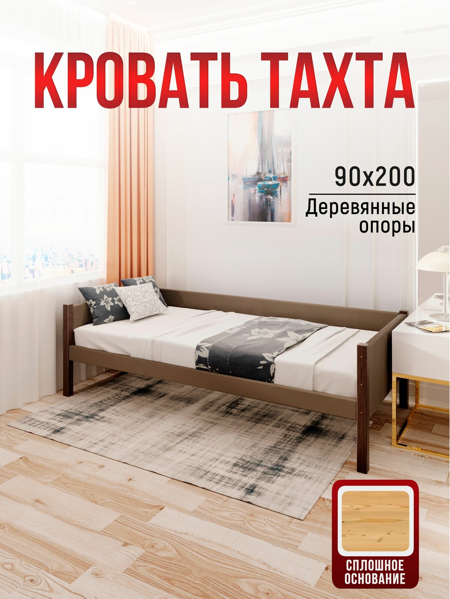 Тахта односпальная Классика из массива сосны, 90х200 см, со сплошным основанием и мягкой коричневой обивкой, ножки цвета венге: сравнение цен, характеристики, фото, актуальное наличие и цены.