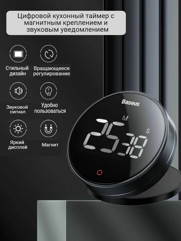 На светодиодном экране отображается самая важная информация. Цифры видны как днем, так и ночью. Для более комфортного использования, помимо отсчета времени, Baseus Heyo Rotation Countdown Timer Pro оснащен звуковым сигналом.