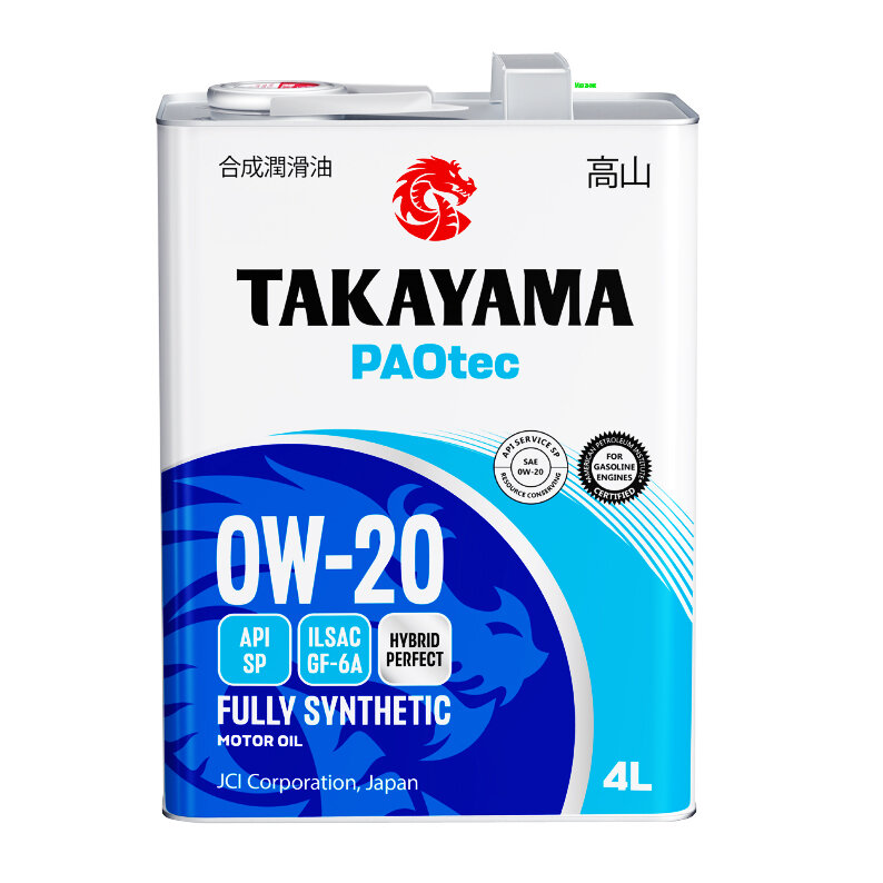 TAKAYAMA Масло моторное Takayama PAOtec 0W-20 GF-6A SP 4л (металл) (старый арт.605599)