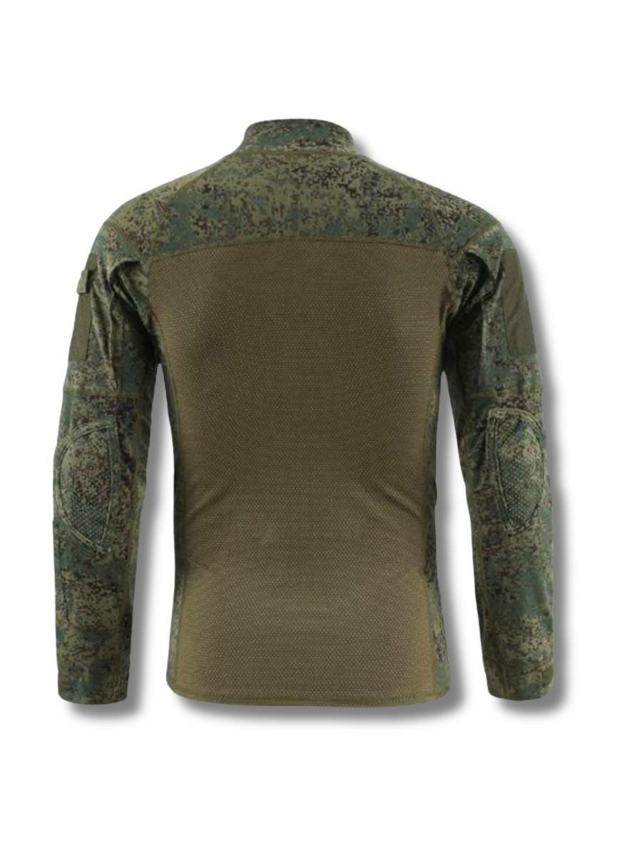 Тактическая рубаха / кофта для лета и тёплого межсезонья, прекрасно подходит для охоты, и других видов активного отдыха, таких как пешие прогулки, альпинизм, кемпинг, рыбалки для страйкбола или пейнтбола. Торс и рукава выполнены из мягкого, эластичного трикотажа, который хорошо отводит влагу с тела. Зона живота и большая часть спины выполнены из трикотажа с особым типом плетения волокон, формирующим мелкие ячейки, которые хорошо пропускают воздух. Локти усилены накладками с точками из силикона.