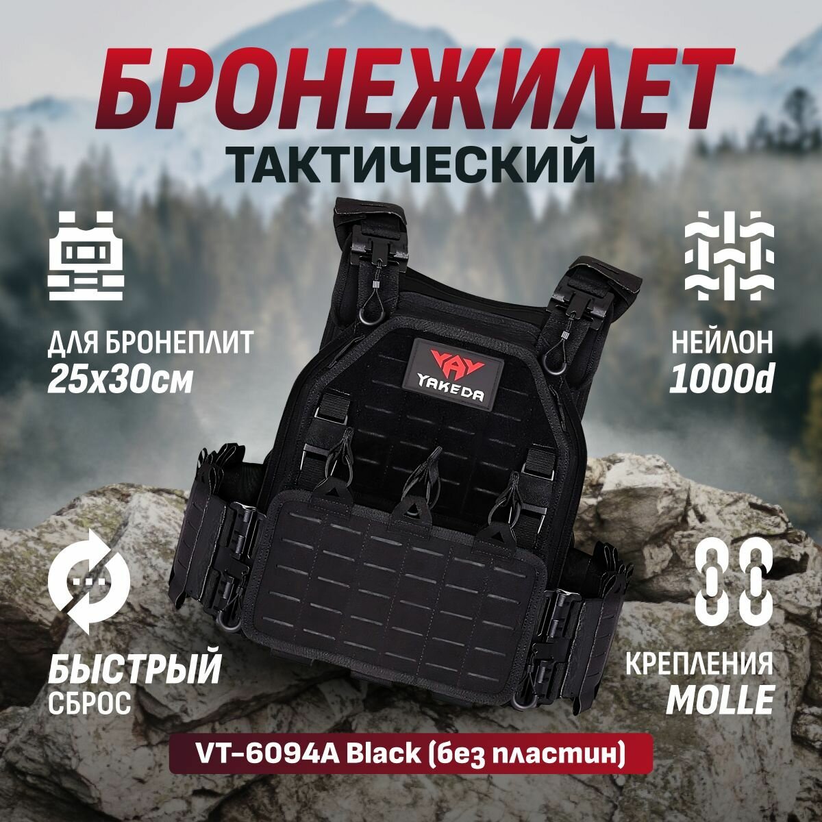 Купить Тактический быстросъемный бронежилет (плитник) с подсумками Yakeda VT-6094A (без пластин) Черный / Разгрузочный жилет с доставкой по всей России.