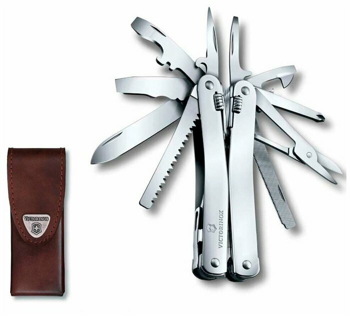 | Инструменты (функции) | консервный нож, открывалка для бутылок, штопор, пила, зубочистка, нож, кусачки, шило / кернер, напильник, пассатижи, ножницы, отвертка, острогубцы, крючок, винтовая отвёртка |
