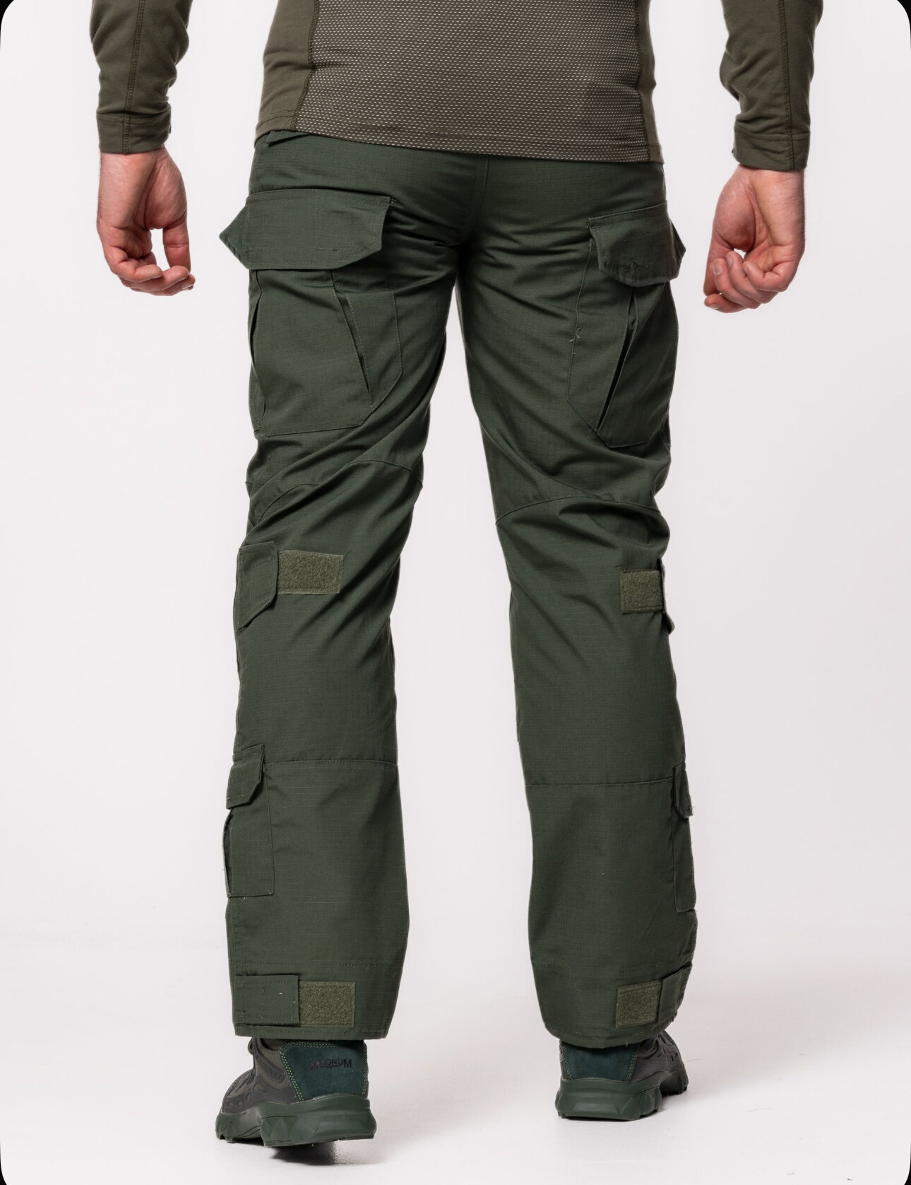 Костюм оснащен множеством функциональных деталей. Воротник, карманы и усиление контактных зон делают его удобным и практичным. Застежка на липучках и молнии обеспечивает надежное крепление и быстрый доступ к содержимому карманов.