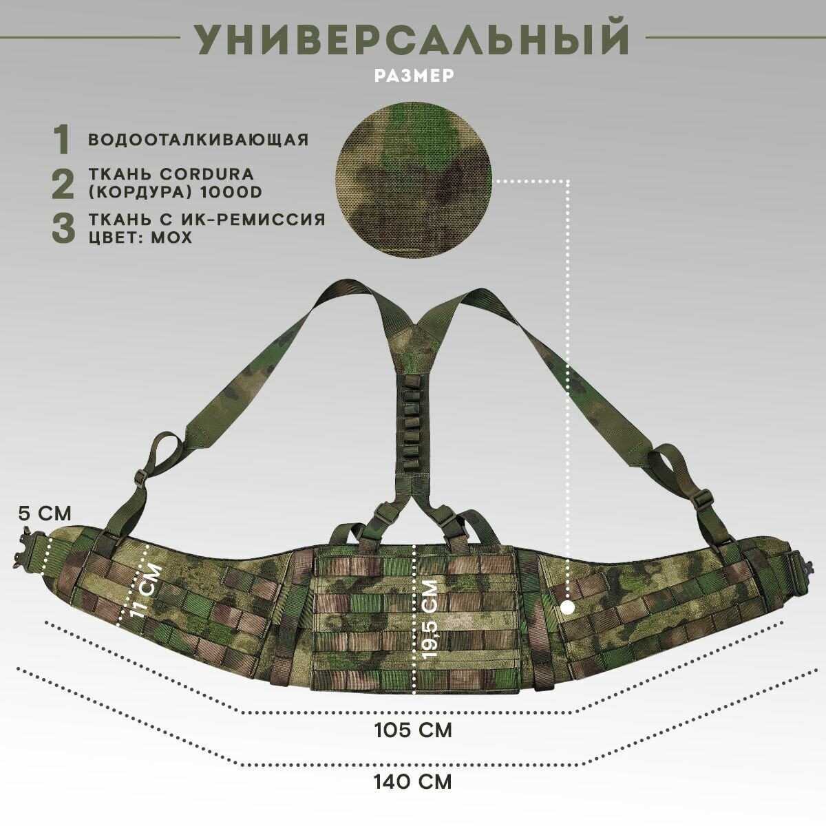 В верхней части тактического боевого пояса имеется 4 точки (петли) для крепления плечевых лямок. Их установка позволяет превратить пояс в полноценную РПС. Мягкие регулируемые лямки обеспечивают комфорт при длительной носке в любых условиях. Плечевые лямки - используются для фиксации пояса и распределение его веса на плечевой отдел. За счет прорезиненных вставок на спине дает дополнительную амортизацию при движении.