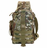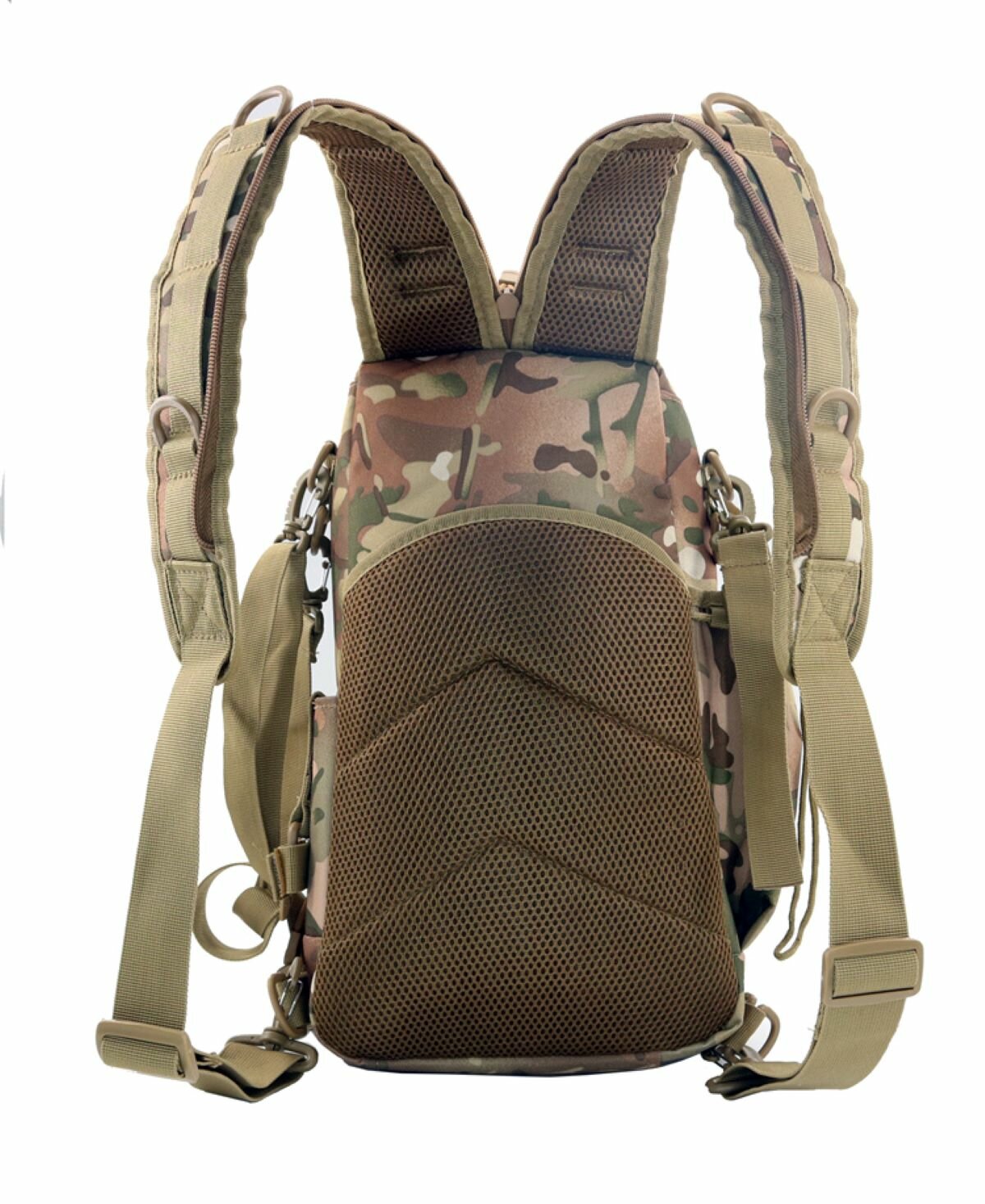 Тактический влагостойкий рюкзак 3 в 1 сделан из прочного оксфорда плотностью 1200D. Его можно носить как рюкзак на два плеча, как однолямочный рюкзак на одно плечо или как сумку. Сверху есть ручка. Одна широкая регулируемая плечевая лямка превращается в две лямки с помощью молнии. Лямки можно перестегивать с правого кольца на левое. По бокам есть 2 кармана, в один из которых помещается булыка воды. Спереди есть 4 кармана на молнии для различных предметов. Сзади находится большой открытый карман, в который можно спрятать плечевые лямки. Внутреннее отделение открывается при помощи молнии с 2 бегунками. В нем есть 2 открытых кармана для смартфона, планшета и других ценных вещей. Отличная вещь для разных целей, особенно для подарка любимому.
