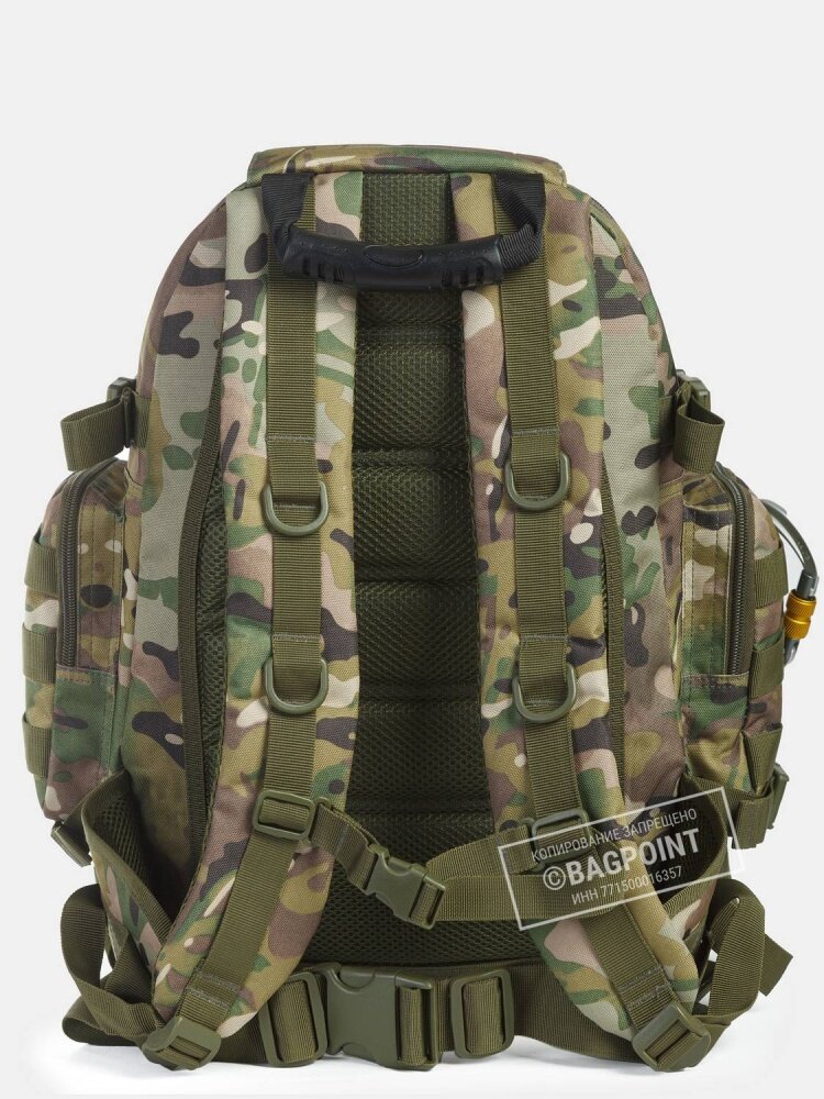 Благодаря нашитым стропам стандарта MOLLE/PALS к рюкзаку можно подвесить различные подсумки (модули) под аптечку, фляжку, патроны, EDC, термос, фонарик, смартфон и пр.