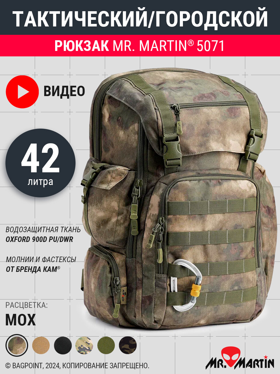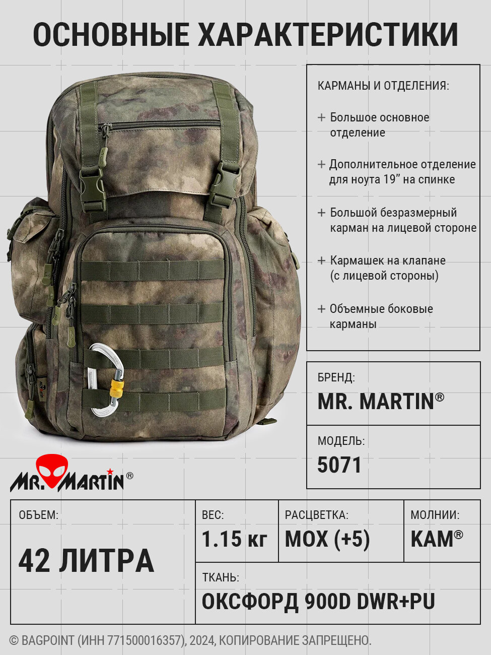Тактический рюкзак Mr. Martin 5071 объемом около 42 литров в камуфляже "Мох".
