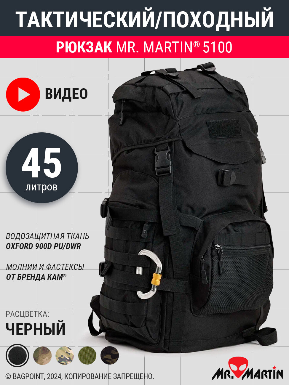 Купить Тактический рюкзак Mr. Martin 5100 Черный 45л с доставкой по всей России.