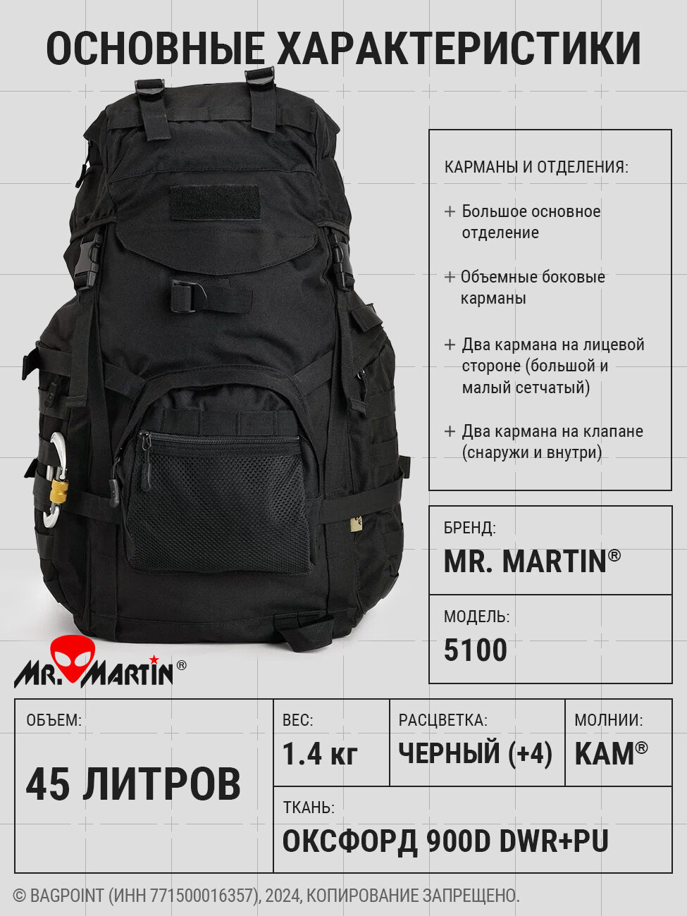 Тактический рюкзак Mr. Martin 5100 Черный 45л: сравнение цен, характеристики, фото, актуальное наличие и цены.
