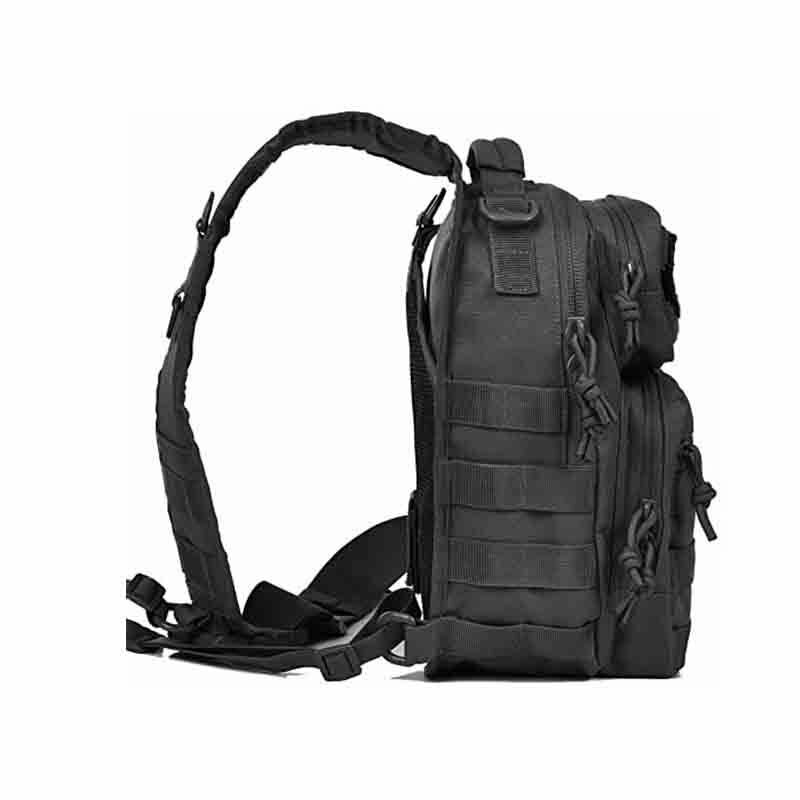 Многофункциональная мужская сумка рюкзак через плечо на одной лямке. Обладает всеми достоинствами компактного однолямочного тактического рюкзака на каждый день. Будет незаменимым помощником в тактических условиях, охоте, рыбалке, а так же в повседневной городской суете. Материал рюкзака оксфорд 900D. По всей поверхности рюкзак оснащен стропами MOLLE. Лямка с вентилируемой вставкой Airmesh. Имеет два небольших кармашка. Лямка регулируемая с фастексом для быстрого сброса. Ручка для удобного ношения в руках. На молниях вместо вечно дребезжащих замков бегунки аккуратно продеты паракордом с запаянными наконечниками. На дне рюкзака есть два специальных отверстия для удаления воды и пыли. На фронтальной стороне два отсека с органайзером и карабином для ключей. Основное отделение довольно объемное с двумя карманами на молнии и один закрывающийся на липучку. На спинке скрыто еще одно отделение рекомендованное для транспортировки оружия самообороны, закрывается кнопкой. Размеры: 30×24×14 см. (высота/ширина/толщина)